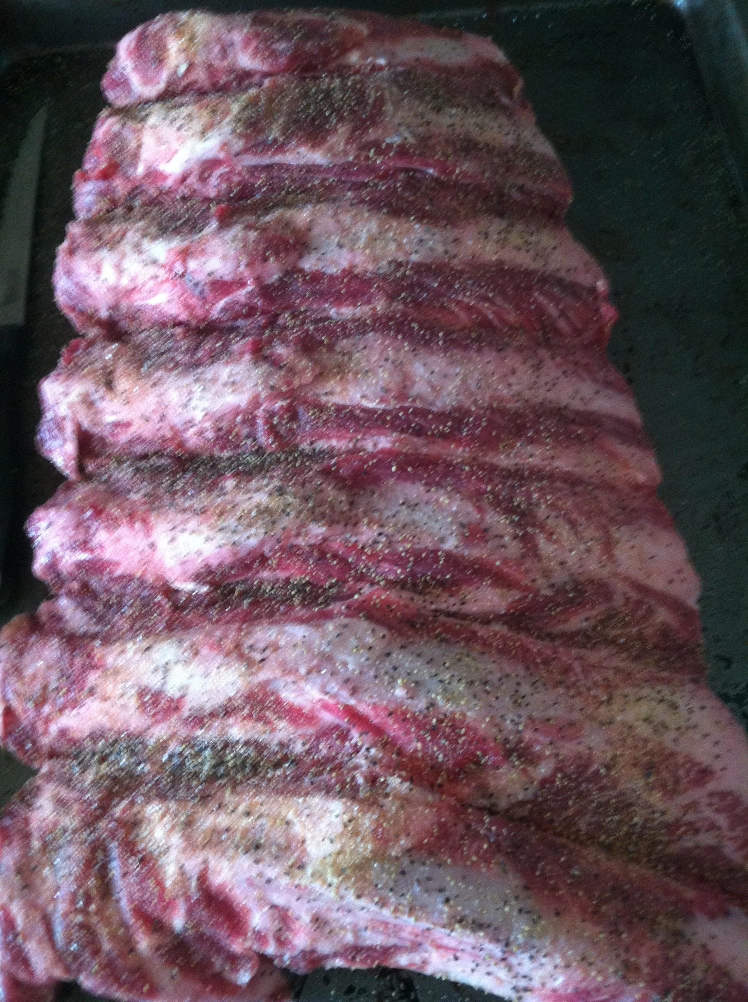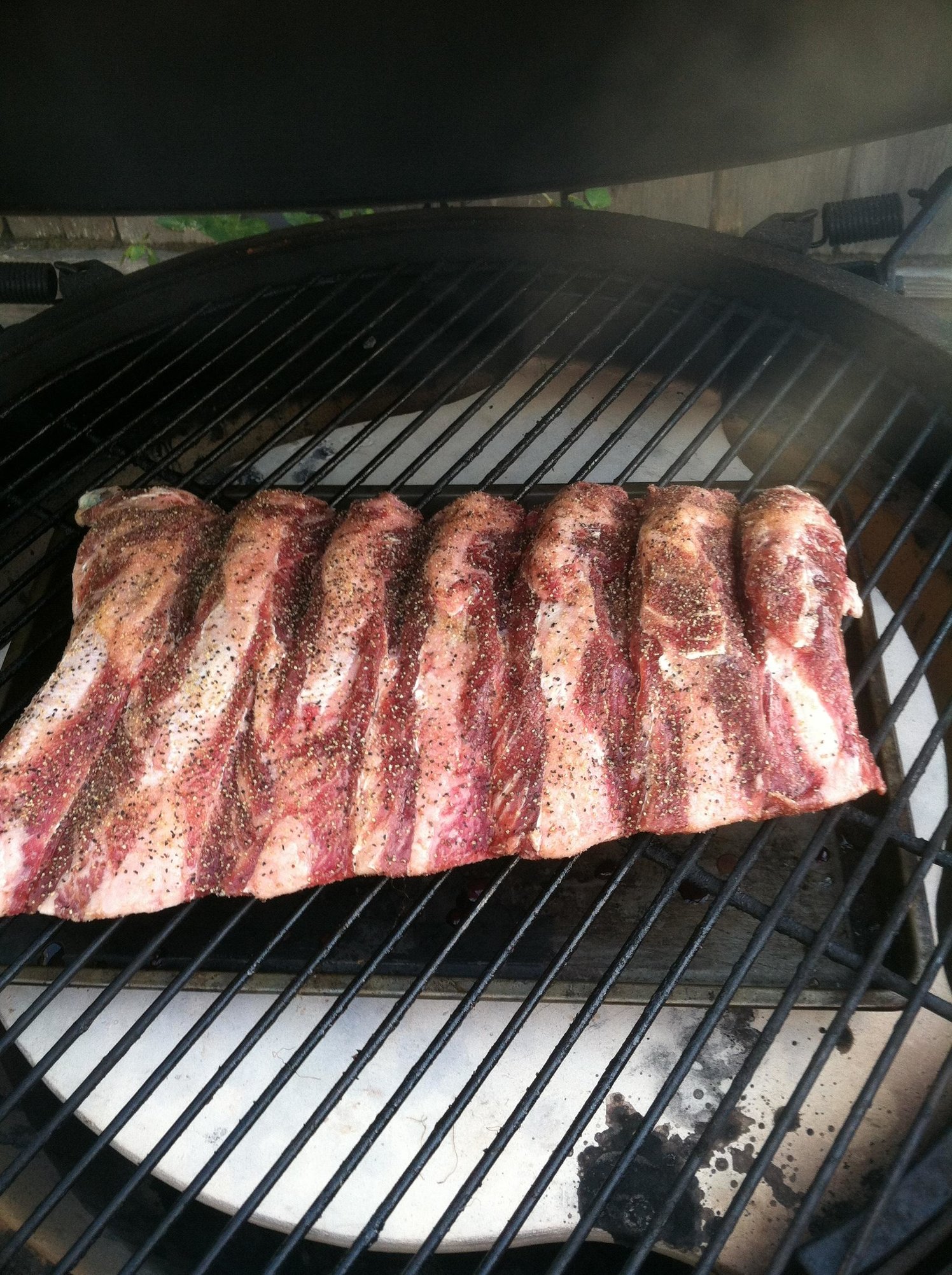 Smoking some beef back ribs.  Never done these before so hopefully they turn out okay.  $10 at Safeway so can't complain if I screw them up.