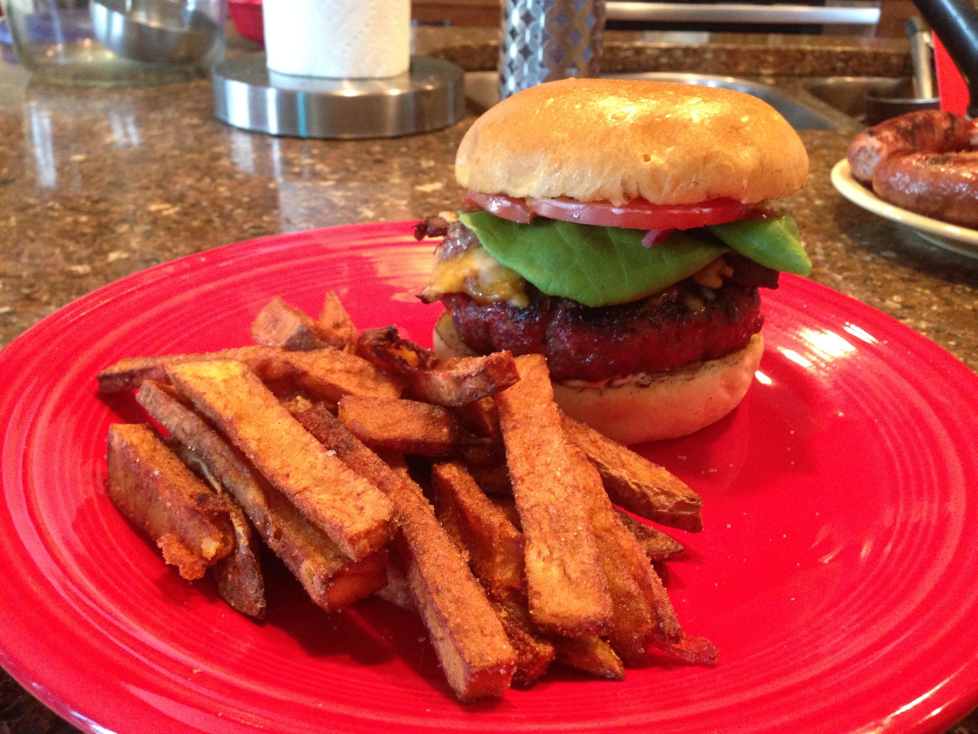 We also made some cold oil fries. When the fries were done we sprinkled on some lawrys seasoned salt. They were fantastic as well. Might try to find more elongated yukons next time to be able to chop the longer fries in half. The short crispy ones were the best. Also found a way to utilize the 1000' of butcher paper laying around; we used it to make a makeshift bag to toss the fries and seasoning.