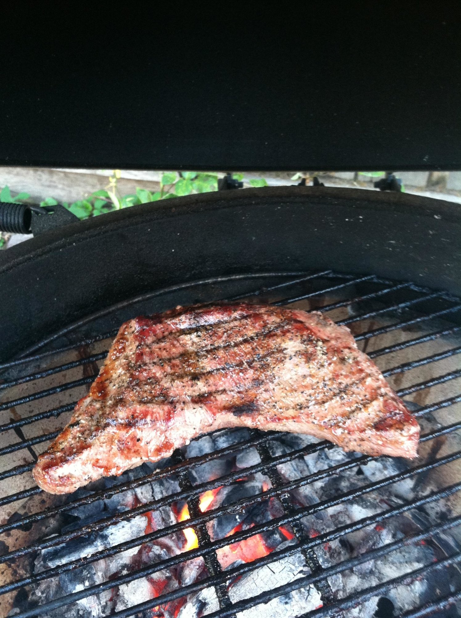when I do chicken pieces I I like to fill one side of the fire box with lump so that I can get a direct and indirect zone going. I throw the wings on the direct side and turn until they get a nice color then cook them on the indirect side till done. Same with the tri tip - sear then go indirect till done. Don't use a thermometer, just by feel or "sponginess" of the meat.