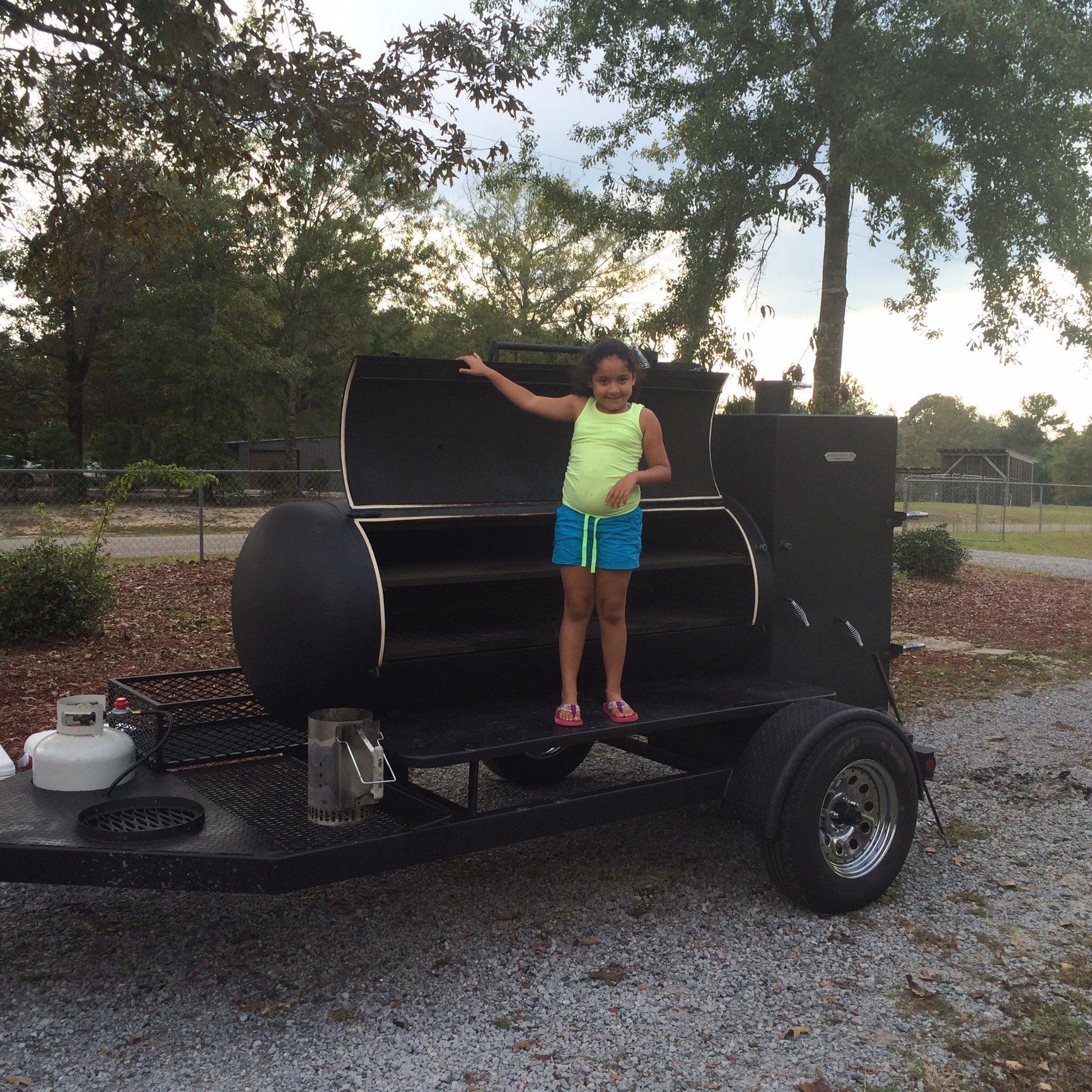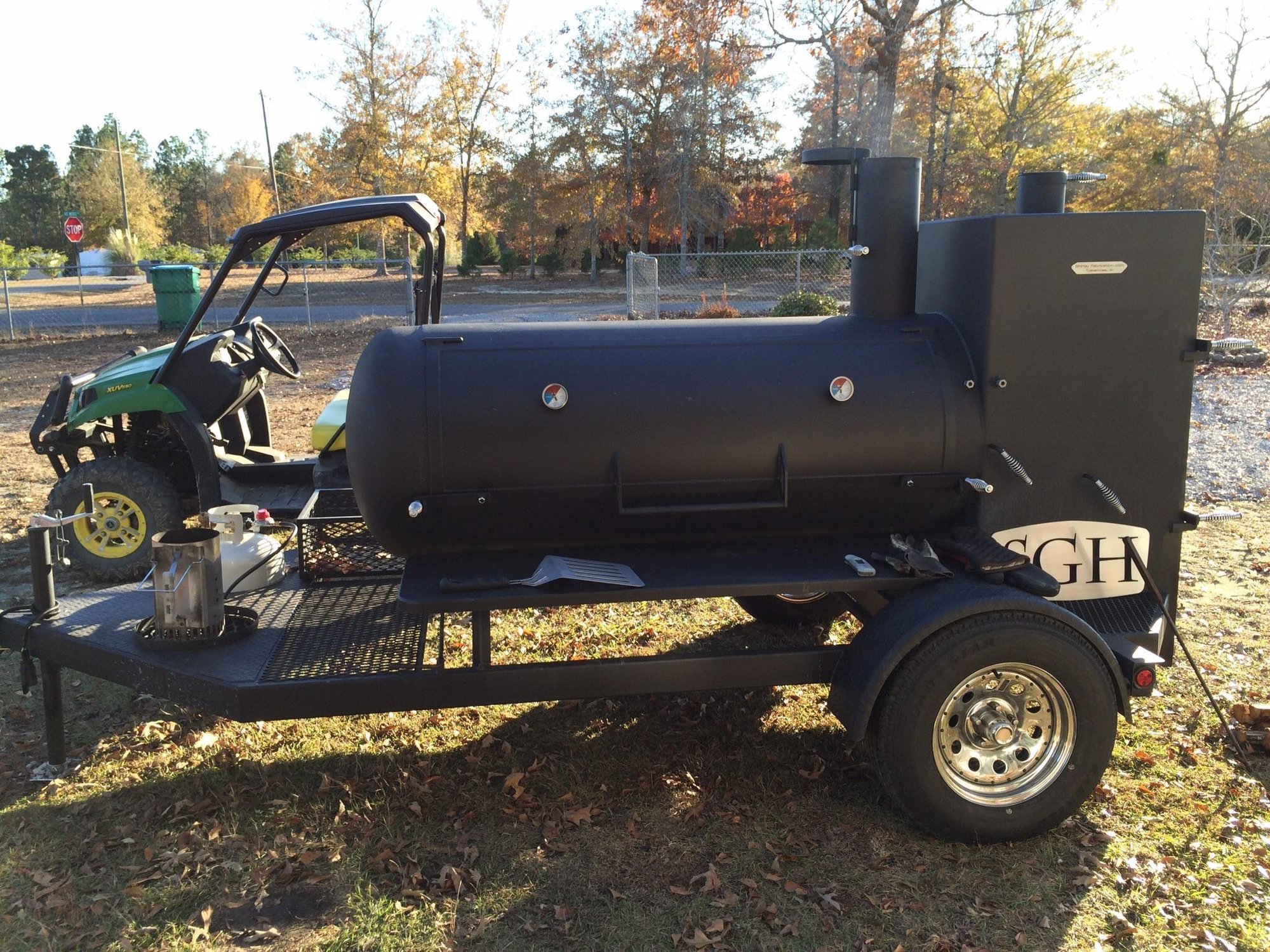 I have a bigger and nicer one that I'm going to start posting pics of soon. However you will have to view them on the BBQ Brethern. I have been informed that cooks posted on non approved smokers will be killed quickly. The title on the Brethern will be "Unit #8". I use the same SGH moniker on the Brethern as well.johnnyp said:Can we get a zoomed out pic of your rig?Location- Just "this side" of Biloxi, Ms.