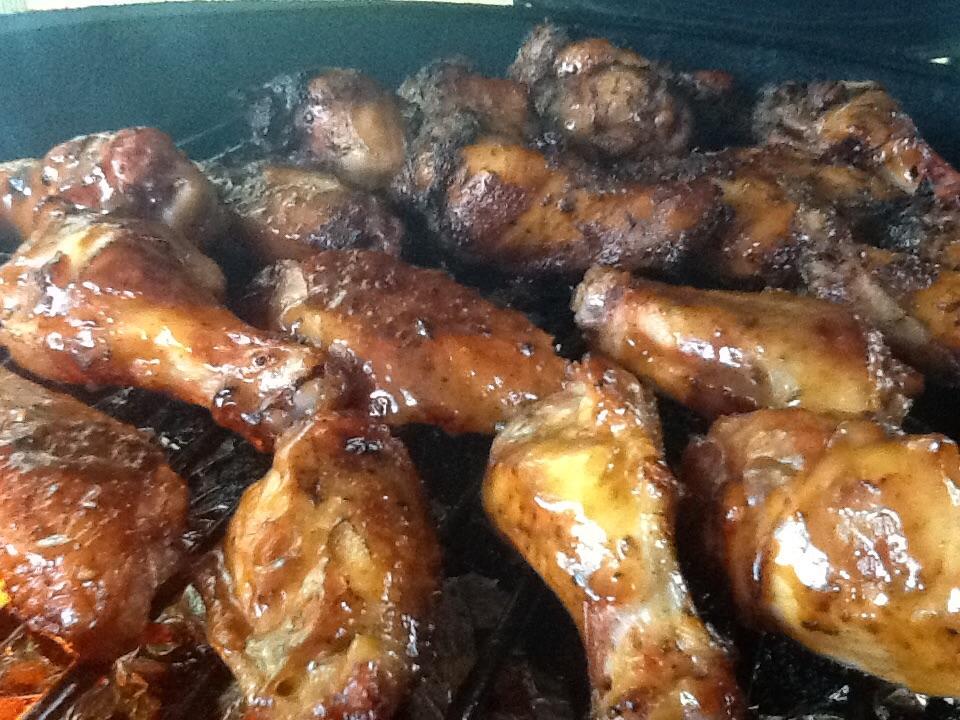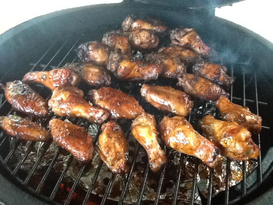 well, wife worked yesterday so we celebrated wing day a day late.1/2 Home made jerk marinade, wings marinated for 24hrs. The others are for the kids, little Tony's creole and pepper till done then coated with "wild thang" sauce (they sell this at local butcher shop, it's GOOD). Cooked indirect @275 for 2 hrs with some hickory. Acoustic Neil Young and margaritas for the cook. Kick ass evening!