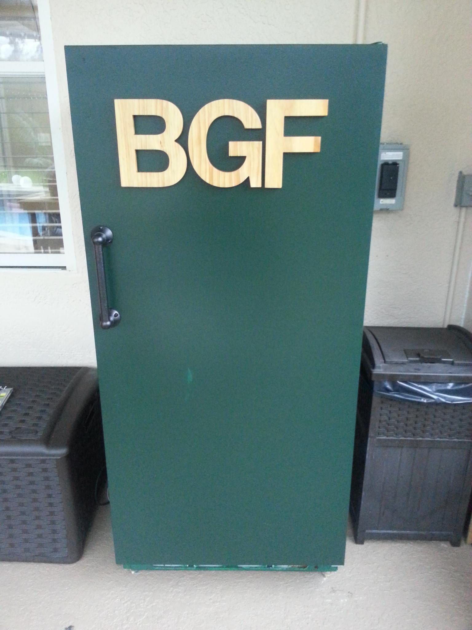 I have a refrigerator on my back porch room lanai/pool area. It is all fridge and no freezer, great for storing adult and grand kids beverages. Being white it was just not going to look right in the BGE color scheme. So the paint store matched the color of the ceramic dome and now it looks like it belongs in my outdoor kitchen. Still working on the area and hope to fire up the new eggs in the next day or so.