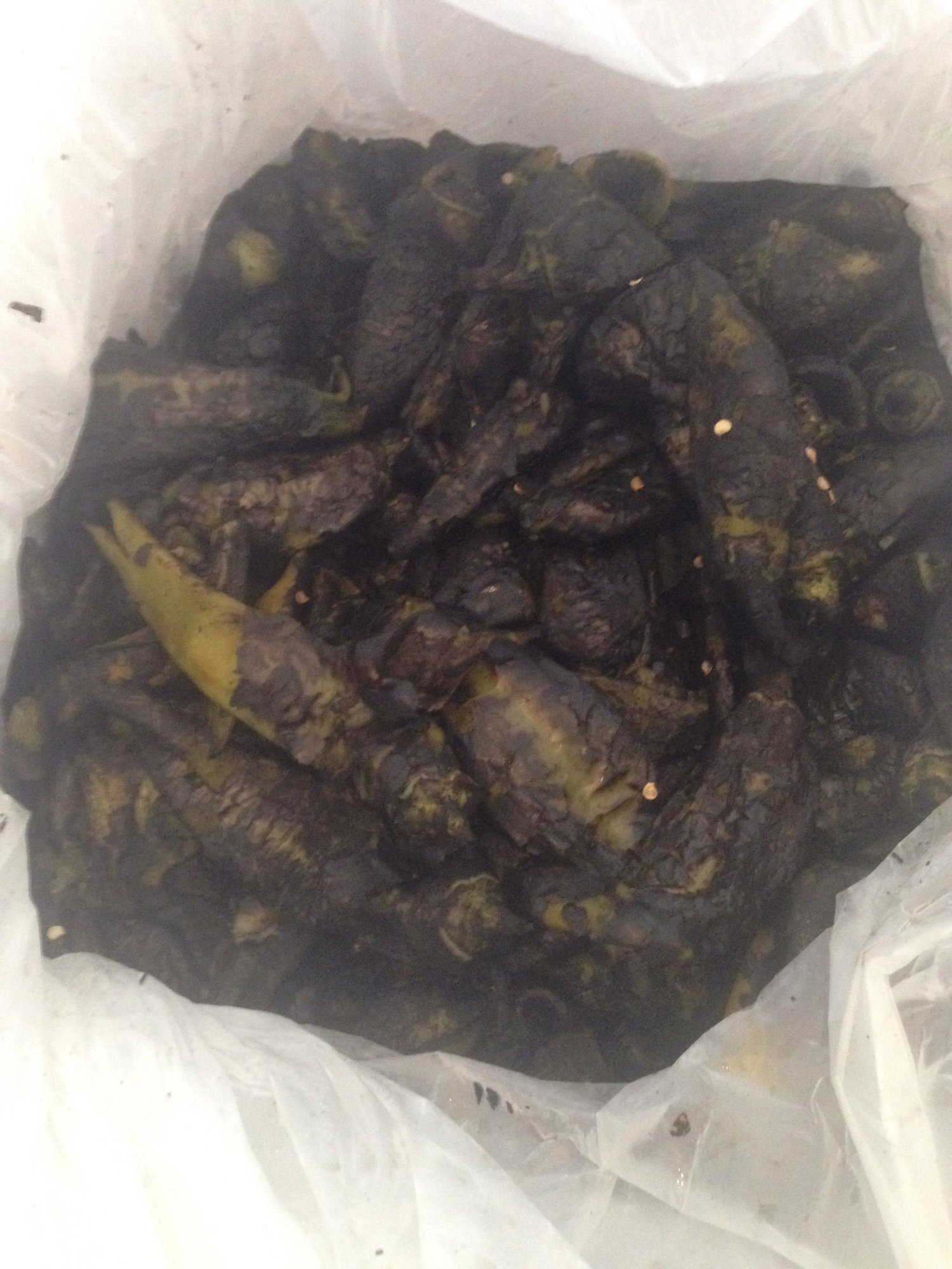 Roast and pull the skin, wrap in paper towels in a baggie or paper bag, peel and freeze. Unbelievable in chili or on burgers... Or about anything.