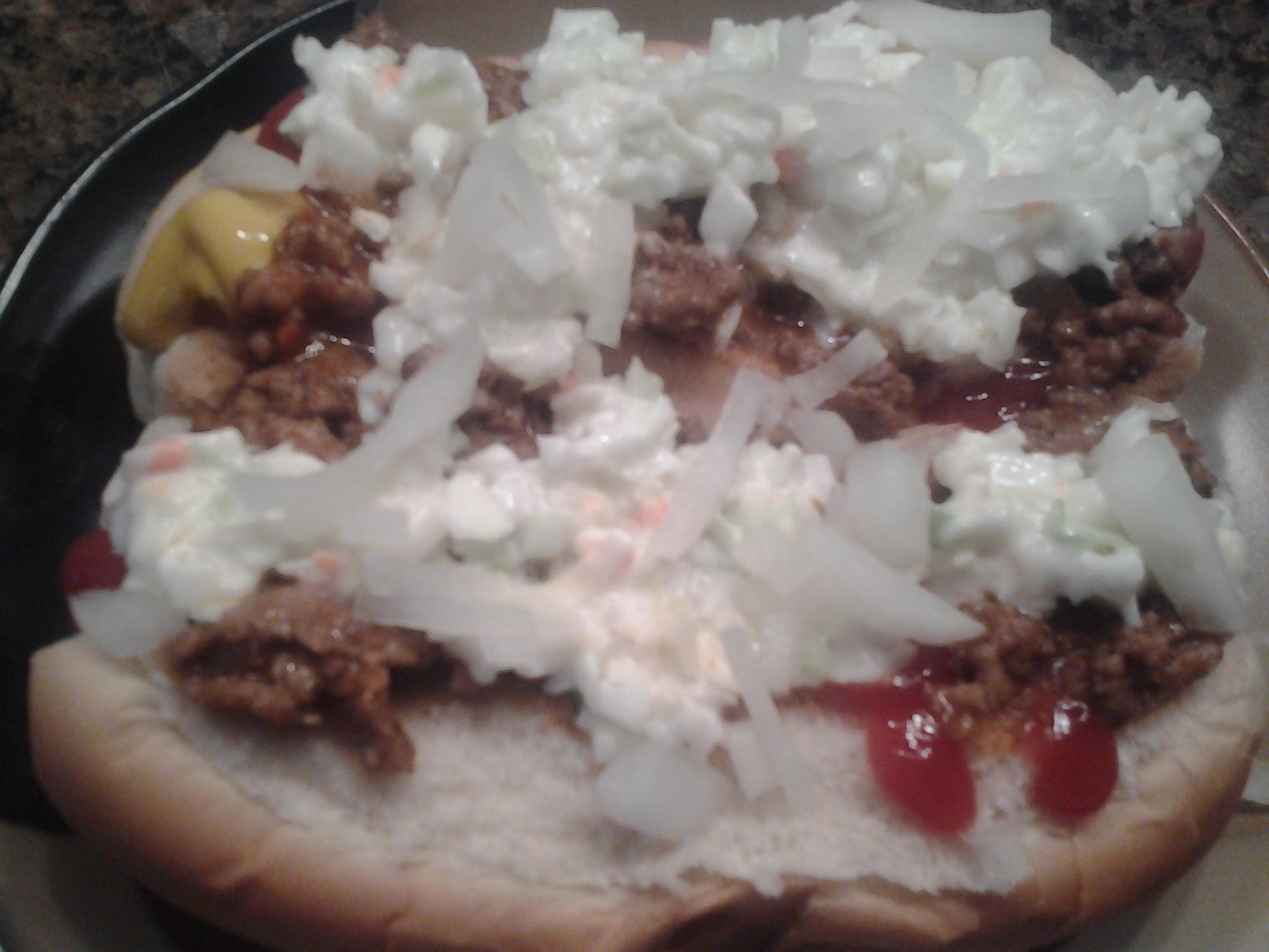Local market makes hot dogs out of boston butt. (only kind I eat now). Top w/ chili,onions,mustard, and sometimes sub for onions a new product called SLAWSA.( This stuff is legit!). Love me some Varsity dogs when I can get thereSTAY THIRSTY MY FRIENDS!GIVE ME OYSTERS AND BEER FOR DINNER EVERY DAY OF THE YEAR& I'LL FEEL FINE!SW Georgia : LARGE & MINI BGE