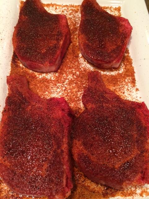 Lessons Learned: I may grill them next time at a slightly lower temperature - maybe 450ish. Two of the chops puckered a bit when hit with the very high temp which didn't really affect the taste or consistency but did slightly affect the appearance giving it a bowl like appearance. On the other hand it helped hold the moisture in the "bowl"....ha!