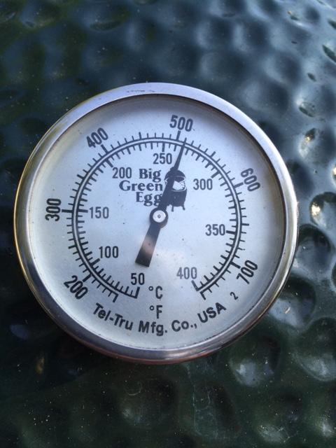 I fired up the BGE to just over 500* with no additional wood and let the chops go for 5 minutes on the first side, then flipped them and shut down the egg completely for an additional five minutes. The temp never went below 450* even when totally shut down.