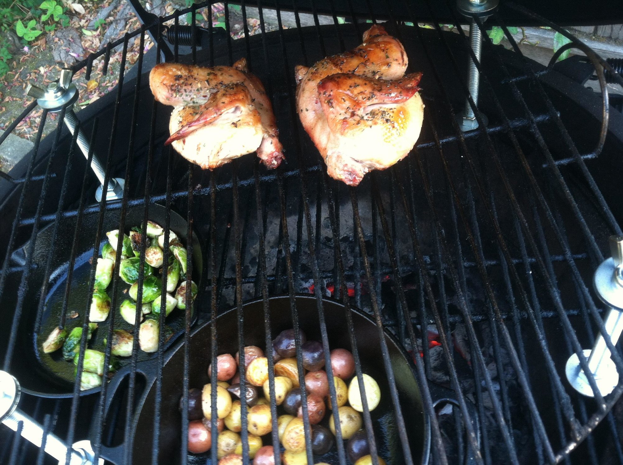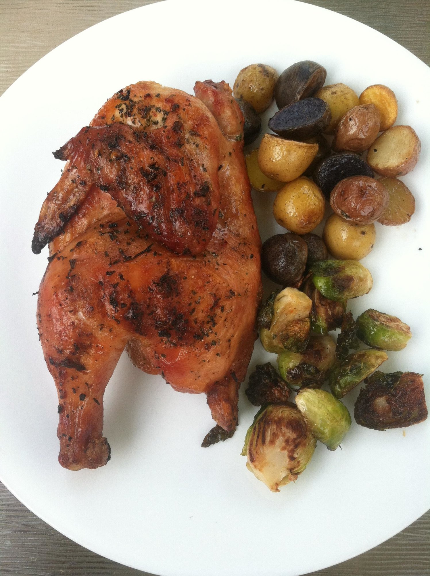 Decided to try it out. Cornish hen, potatoes and sprouts.