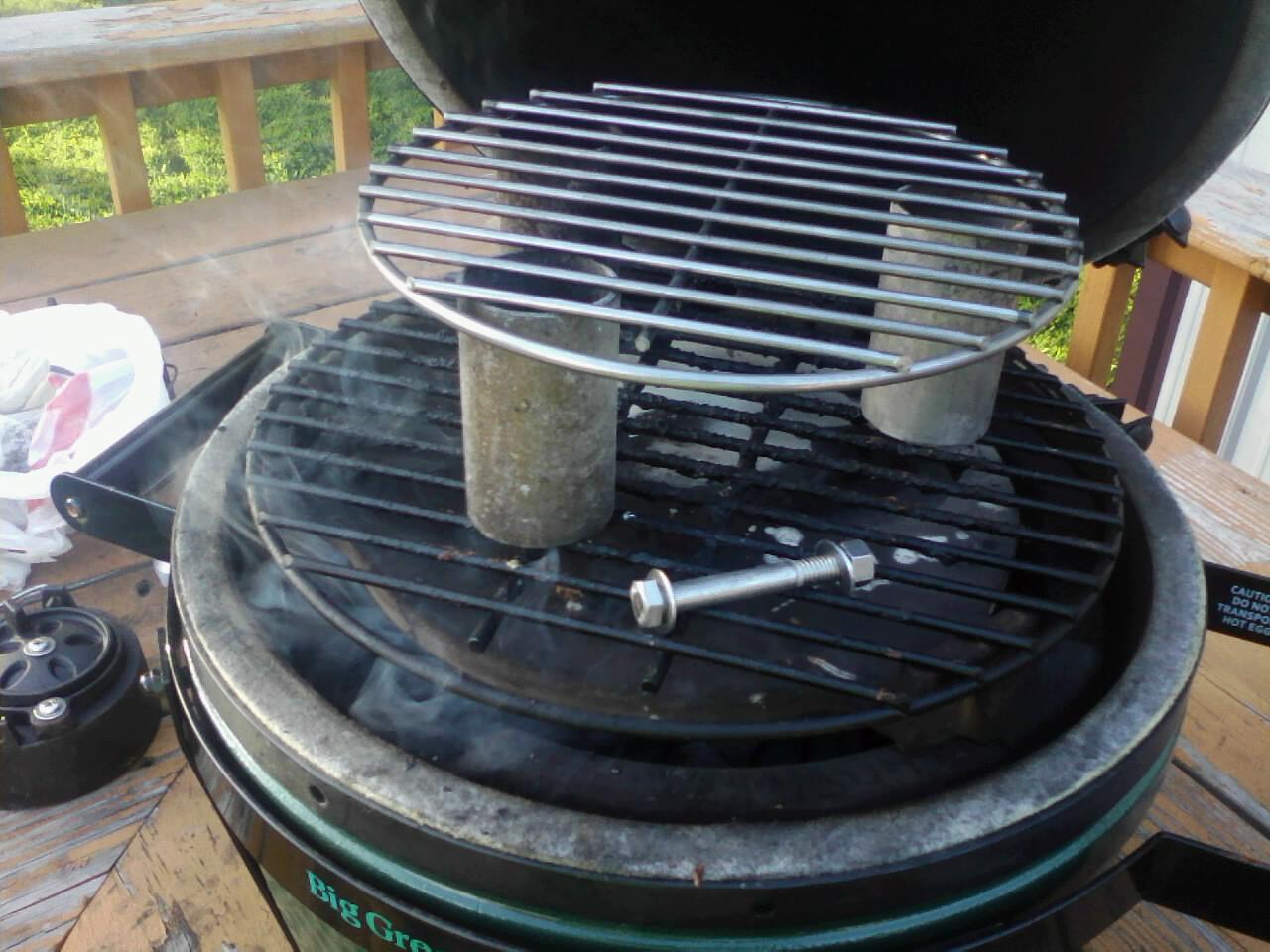 Thanks for the input everyone. @SkinnyV I would love to use my bigger eggs but taking the MM to deer camp tomorrow night. @Jeremiah I am assuming you have nuts right underneath the top grid to hold it up? The bolts I bought are not fully threaded......looks like another run to the hardware store tomorrow.