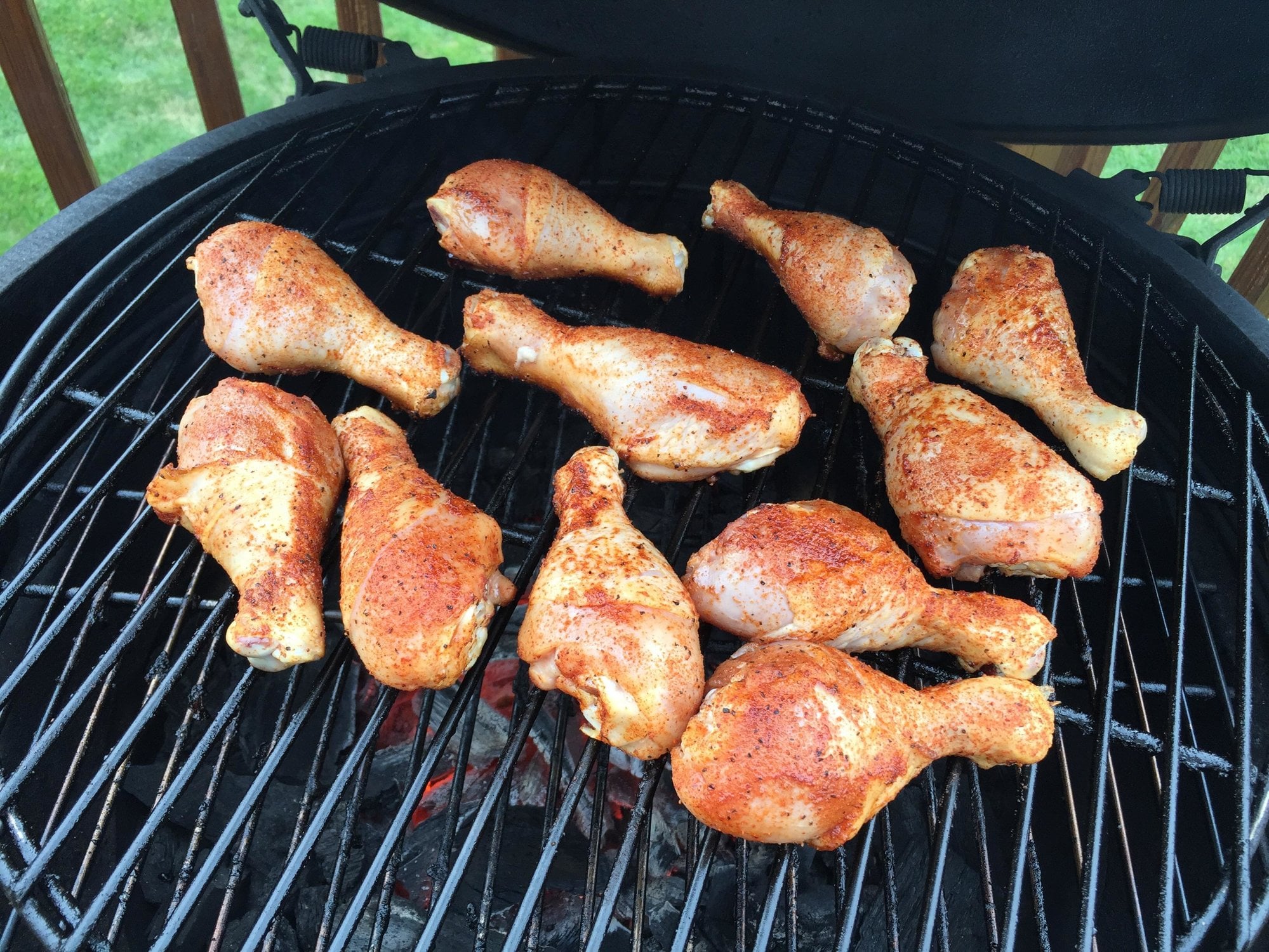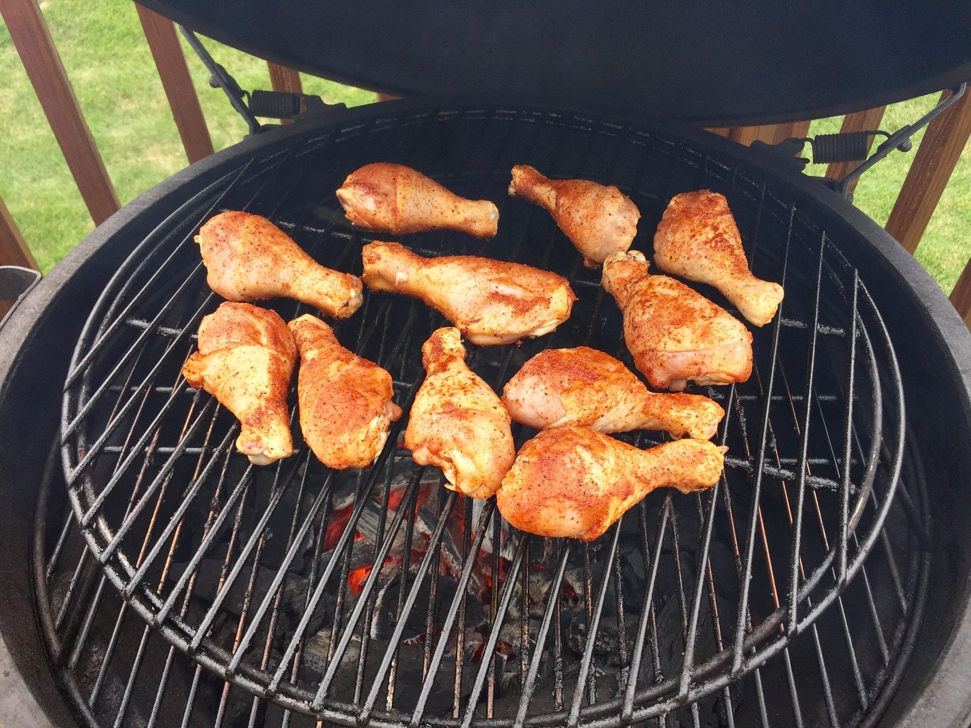 My wife wants legs, so here we go. Yardbird rub raised direct at 375. Applewood chunk for smoke.