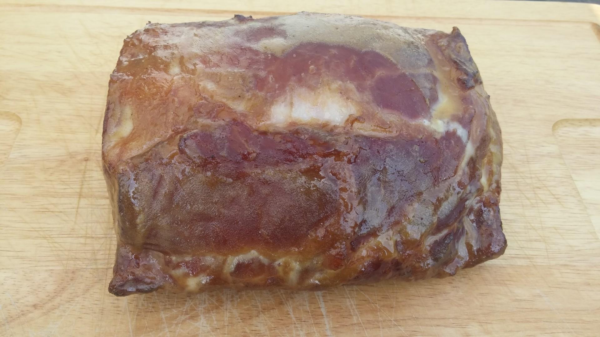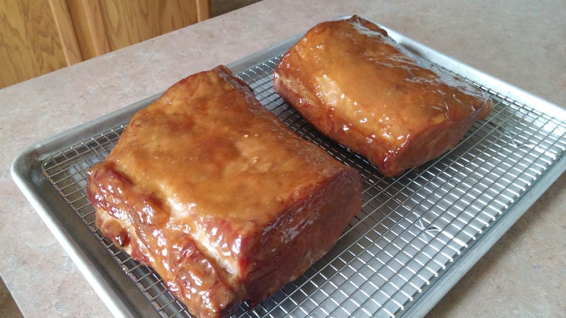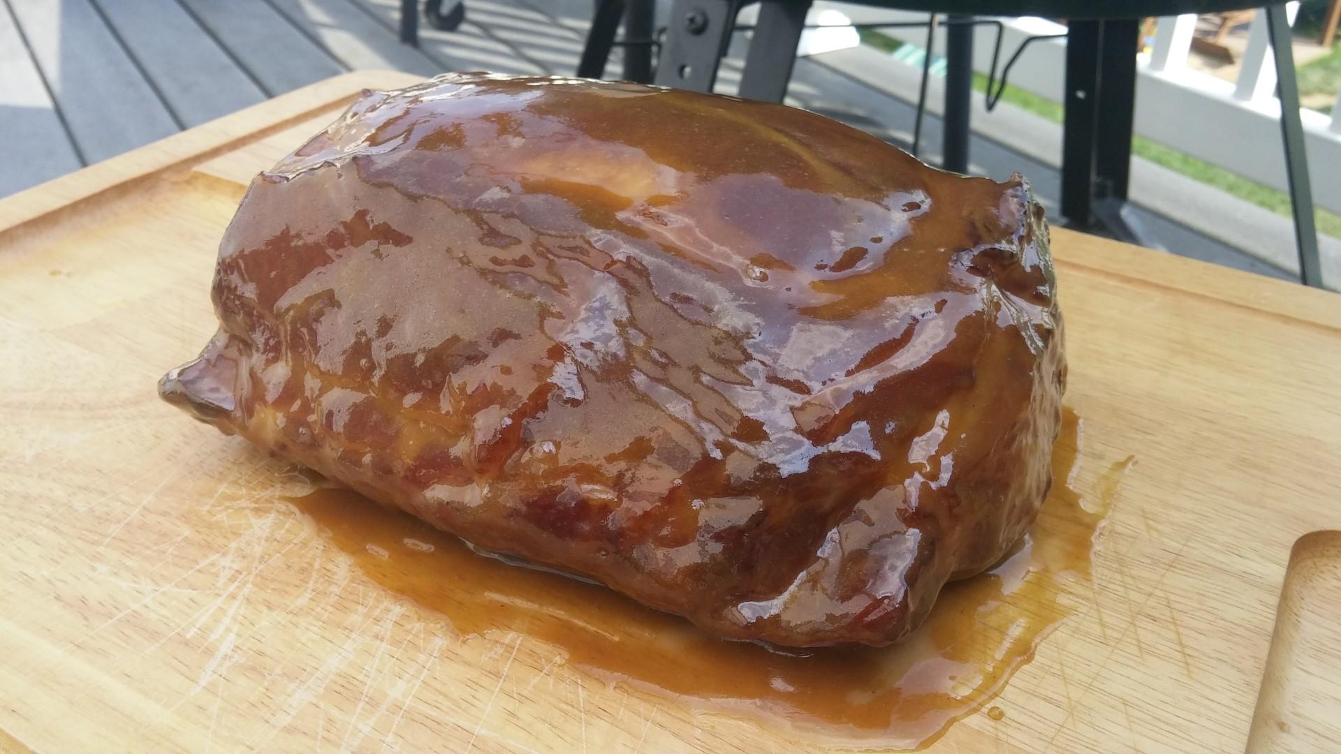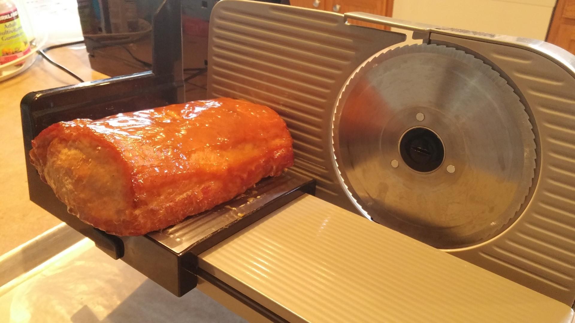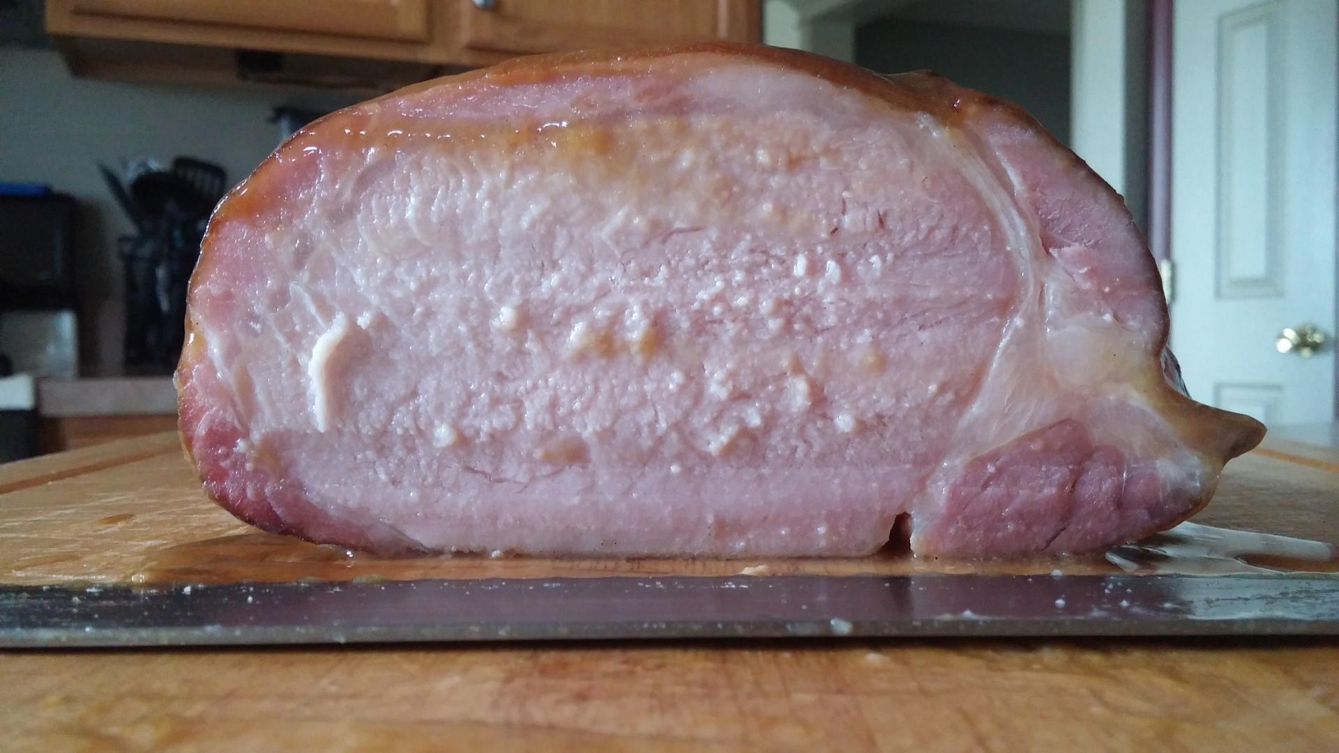 So I decided to try the recipe in Charcuterie for American-Style Brown-Sugar-Glazed Holiday Ham, but with loin instead of fresh ham. I used all the times/temps from the Canadian bacon recipe however.