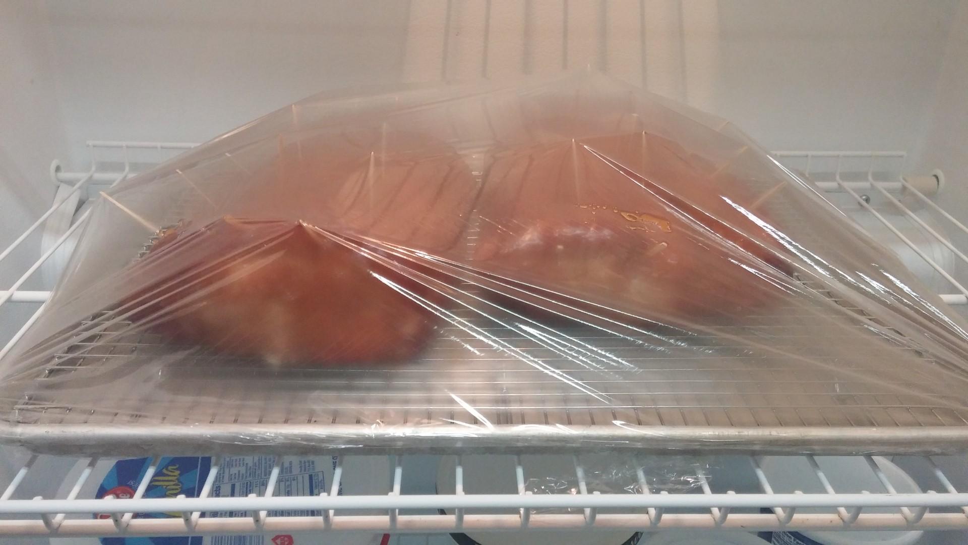 Once they cooled a bit, I gave them a porky pine treatment with wooden toothpicks, covered with plastic wrap and in the freezer to chill.