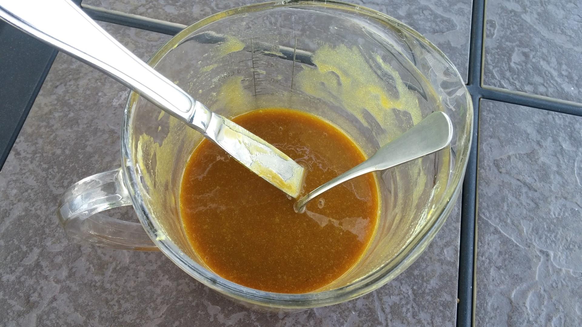 After almost two hours the thinner section had reached around 135* and were ready for some glaze, the thick section was still 117*. I left the garlic out of the glaze recipe because the kiddos are more about sweet and less about savory in their sandwiches. So really, it was just Dijon mustard and brown sugar.