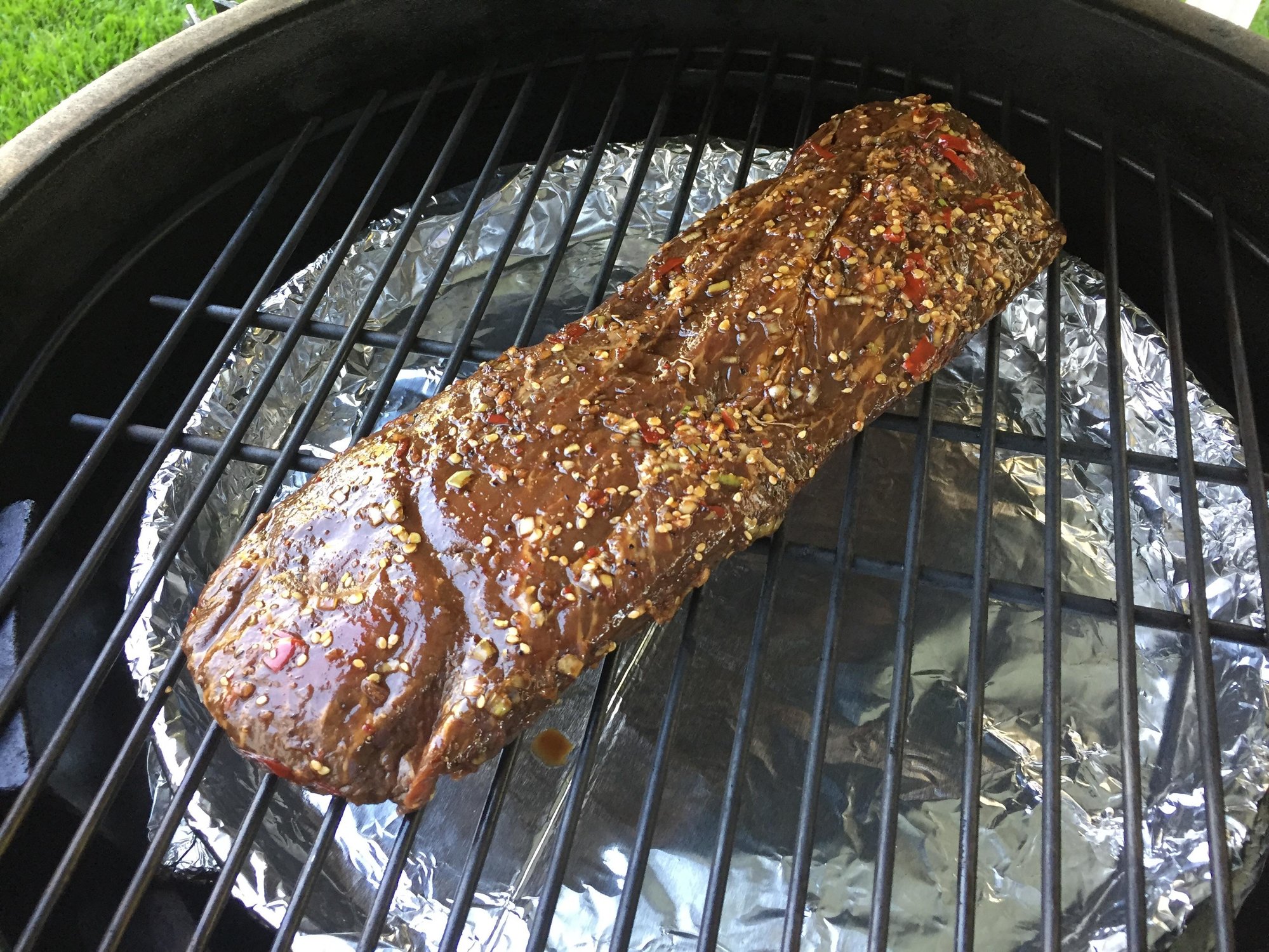 I usually use this Spicy Thai marinade on flank steak that has been precut into thin strips for Lettuce wraps. Was craving the flavor tonight but didn't want all the work. Trying a slow reverse sear over cherry. We'll see if it works out. In the meantime there's a game to watch. Michigan @ Utah.