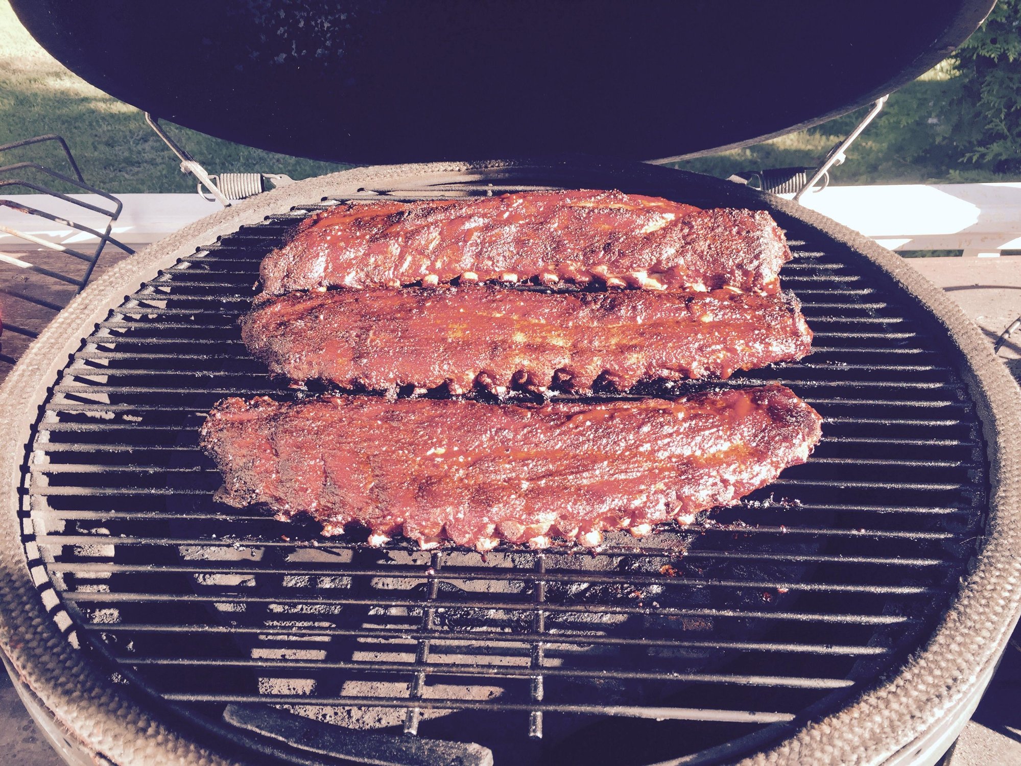 Cooked some some baby backs following Car Wash Mike's method. Finished with some Vidalia Onion BBQ sauce I got in the exchange.