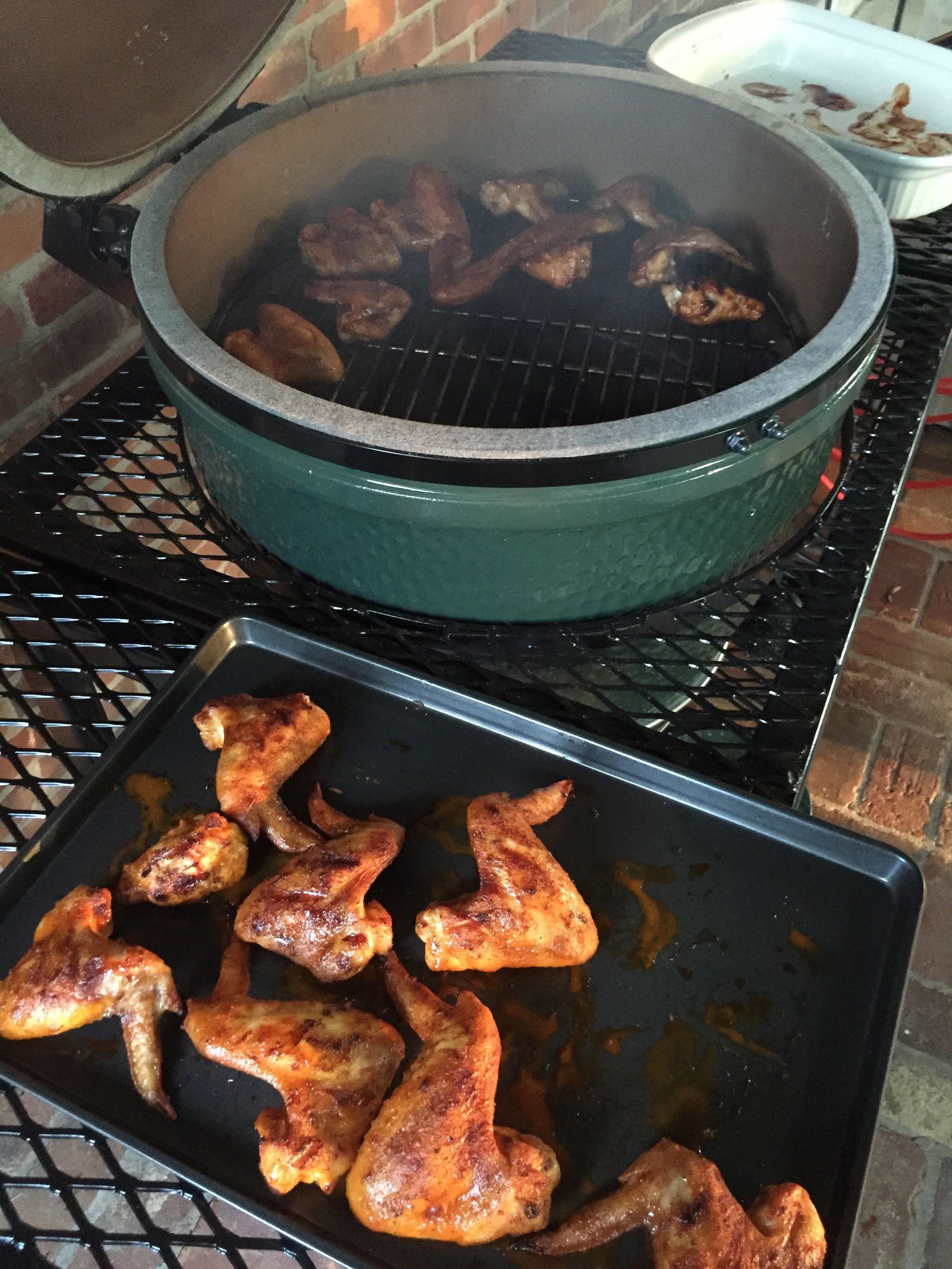 Did the Josh Brown recipe it was outstanding! Had 2 wings that wouldn't fit over the plate setter do they cooked direct instead. Those 2 were so crisp so I will do all direct next time. Half buffalo half BBQ.