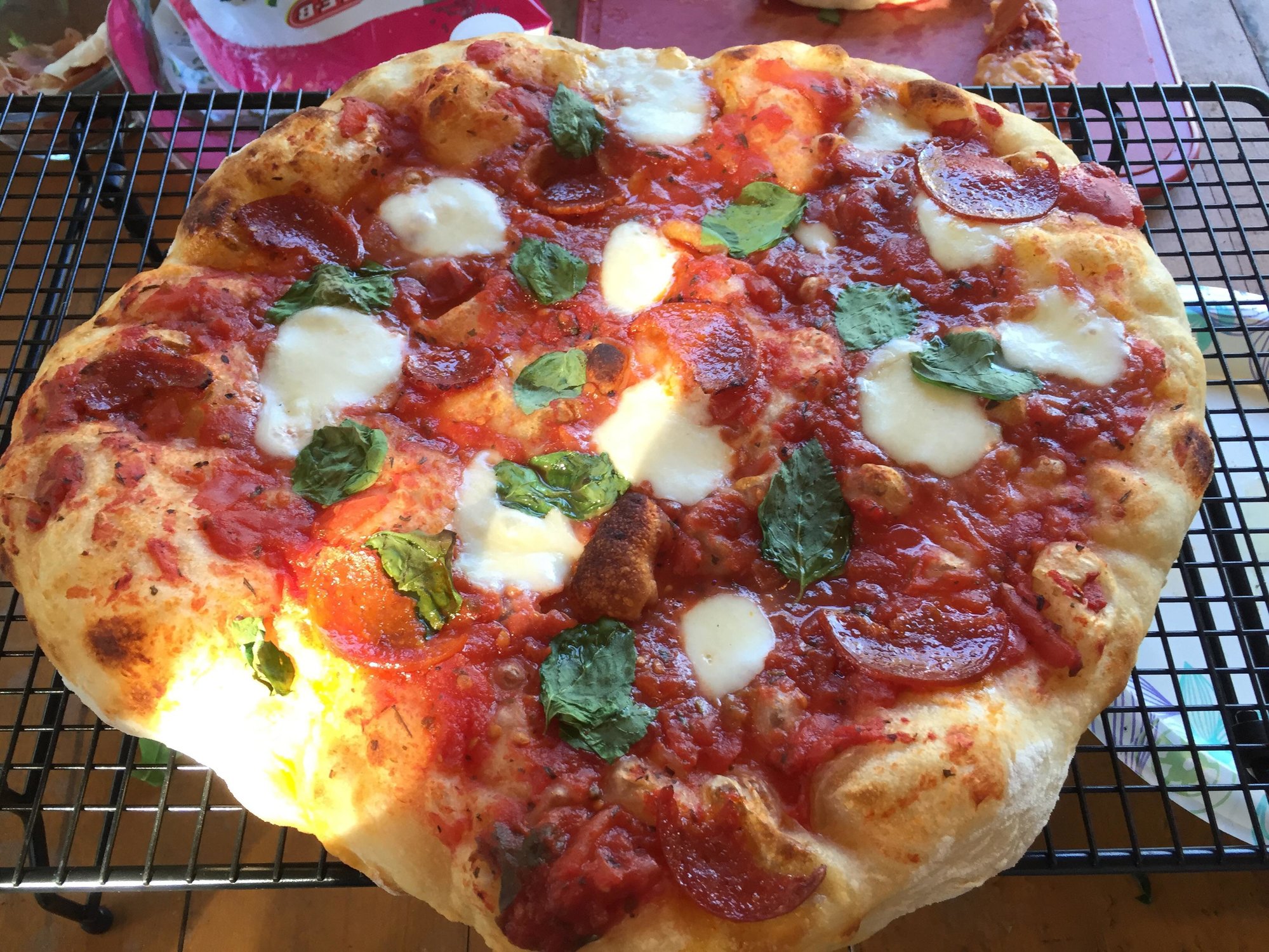 Pizza 3: Margaretta + pepperoni (home made red sauce, fresh mozzarella, fresh basil)