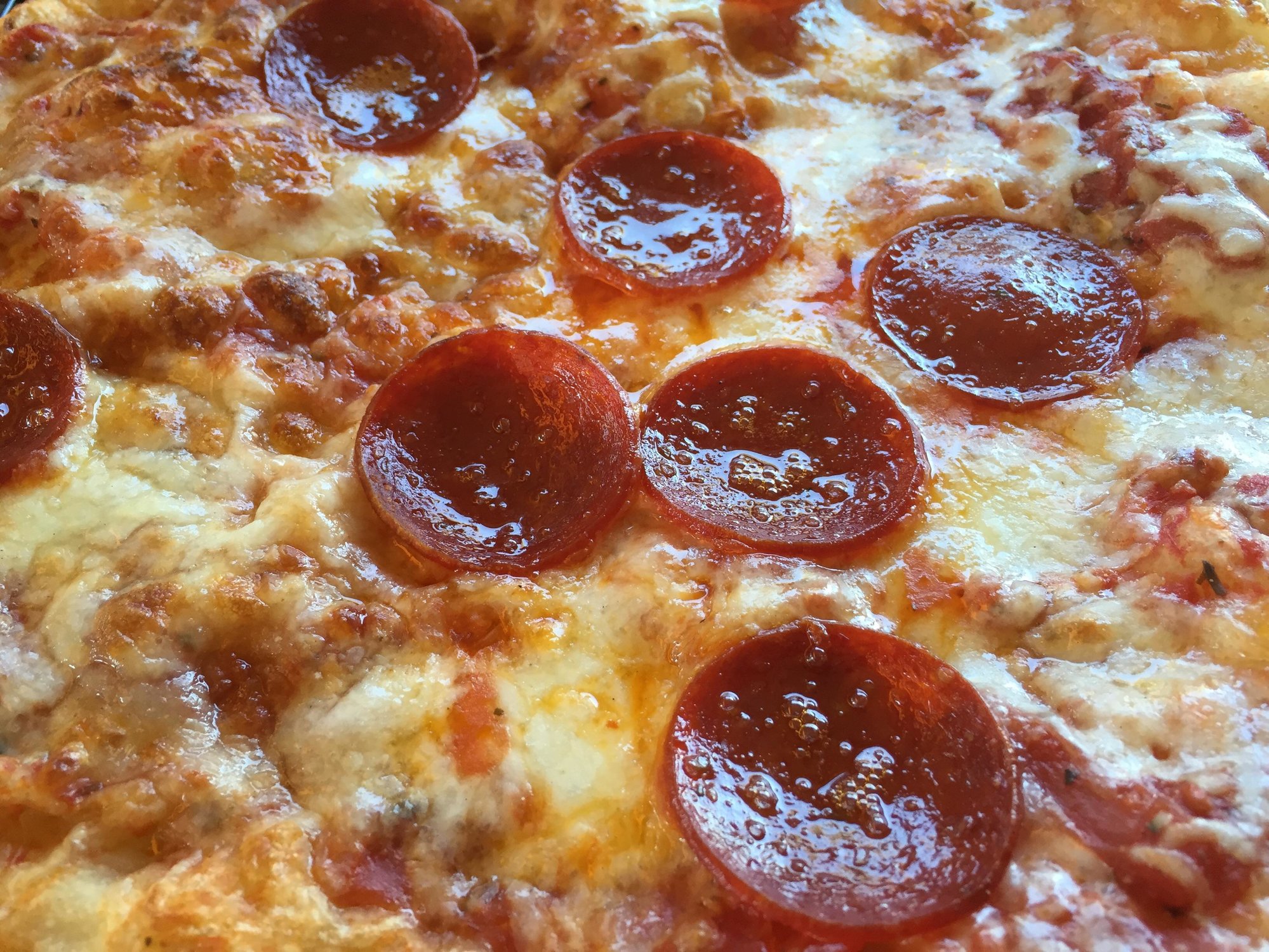 Pizza 1: home made red sauce, mozzarella, three cheese Italian cheese mix, pepperoni