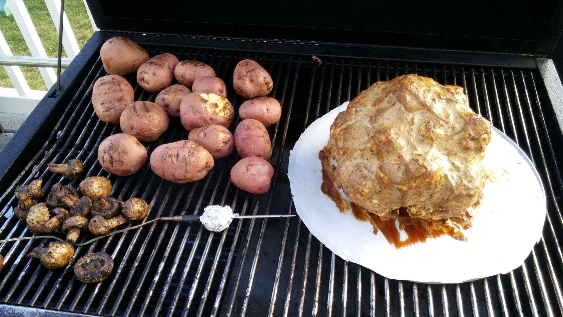 Watched some football, drank some beer, and then got the Hasty Bake setup and put the sides on.