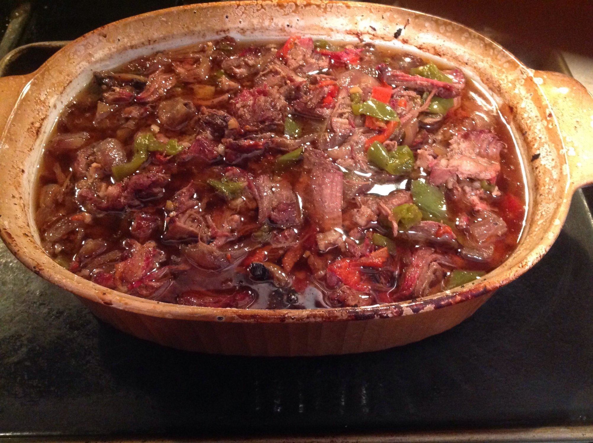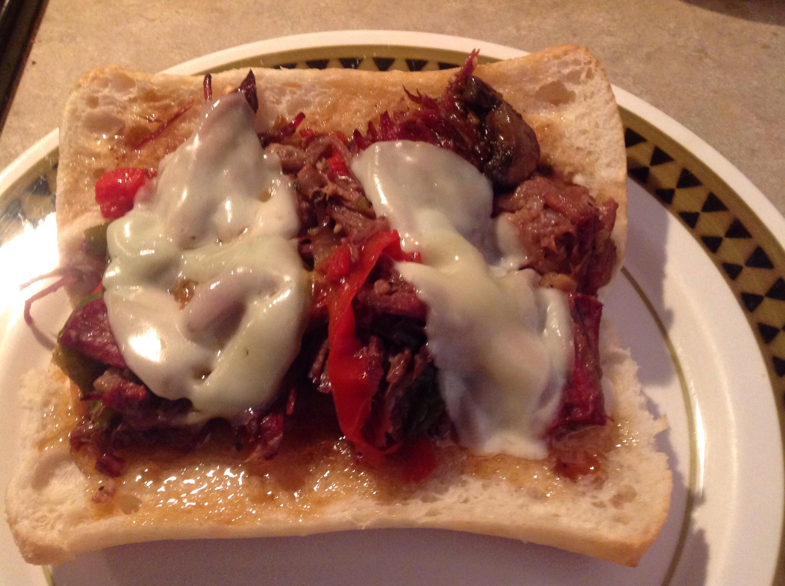 Chilly gloomy day in Northern Illinois today but Bears looking for their first victory this season, so I decided to go with pepper stout beef sammiches smoked with hickory!  Credit to Wolfepit for the recipe. But added a can of French onion soup and baby portabellas thin sliced!  It turned out amazing as did the Bears game!  Hope Ya'll have a great week!