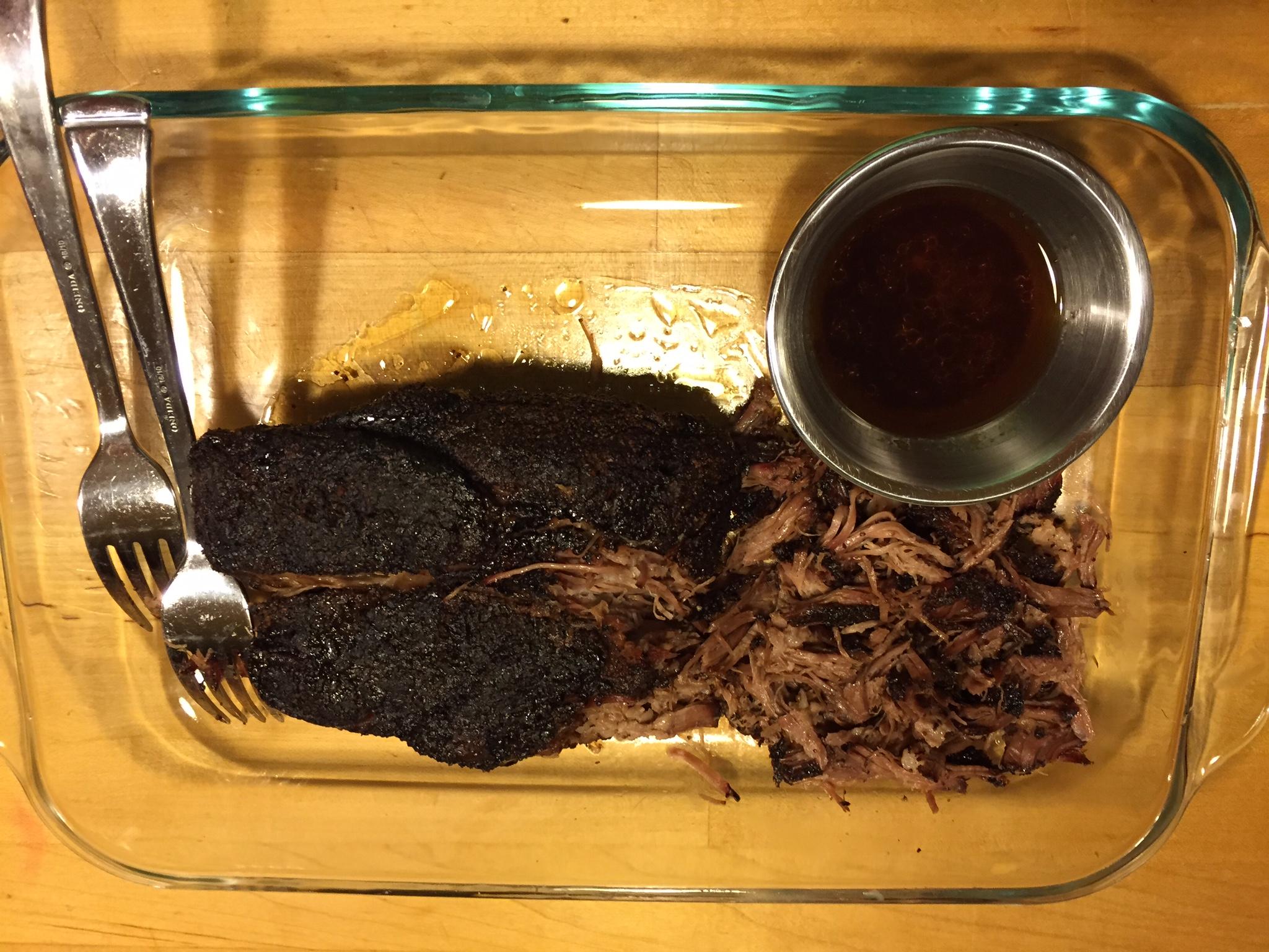 Nothing tricky.  Cooked at 250 for a long time.  Seemed to stall forever in the 145-160 area.  Once I was at 160ish I wrapped dry in foil and put it back on with a bump to 275.  Temp started moving steadily from here on out.  And since we had already ate dinner I was a bit more patient.