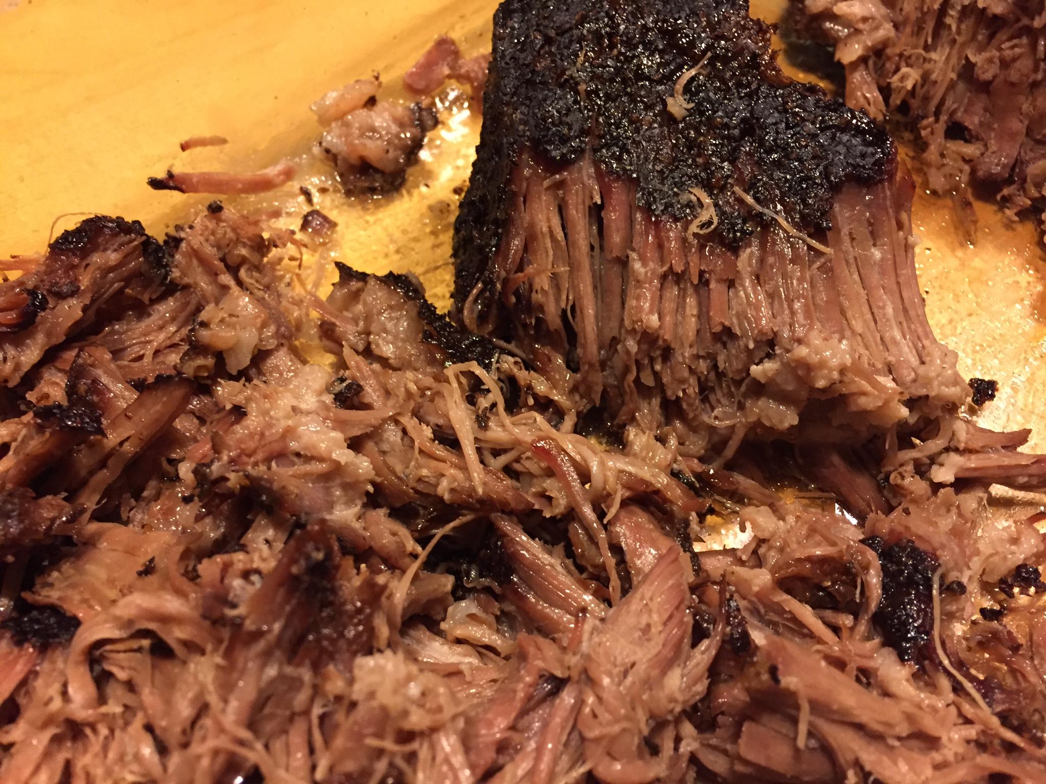 Finally pulled it at about 9pm at 210 degrees. Took a lot longer than expected but as I have been instructed by a reputable egghead "The cow always wins"!  Not only did it probe like buttah but pulled apart the same!  Yes. I had a second dinner.