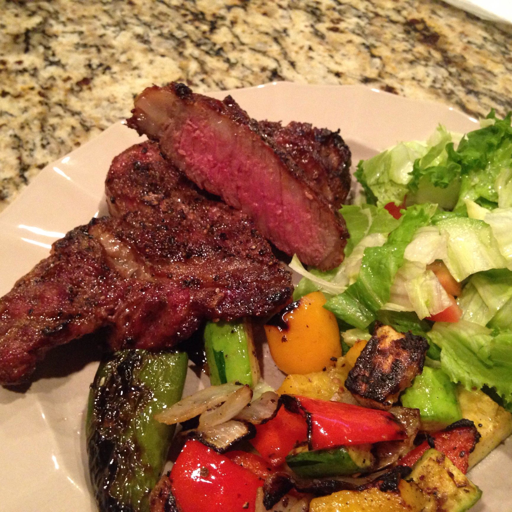 I bought some USDA Prime ribeyes at the local butcher shop last week and I ended up with an orphan, so I cooked it for dinner last night. Just S&P on the steak and Dizzy Pig Raising the Steaks on the veggies. I love this time of year.