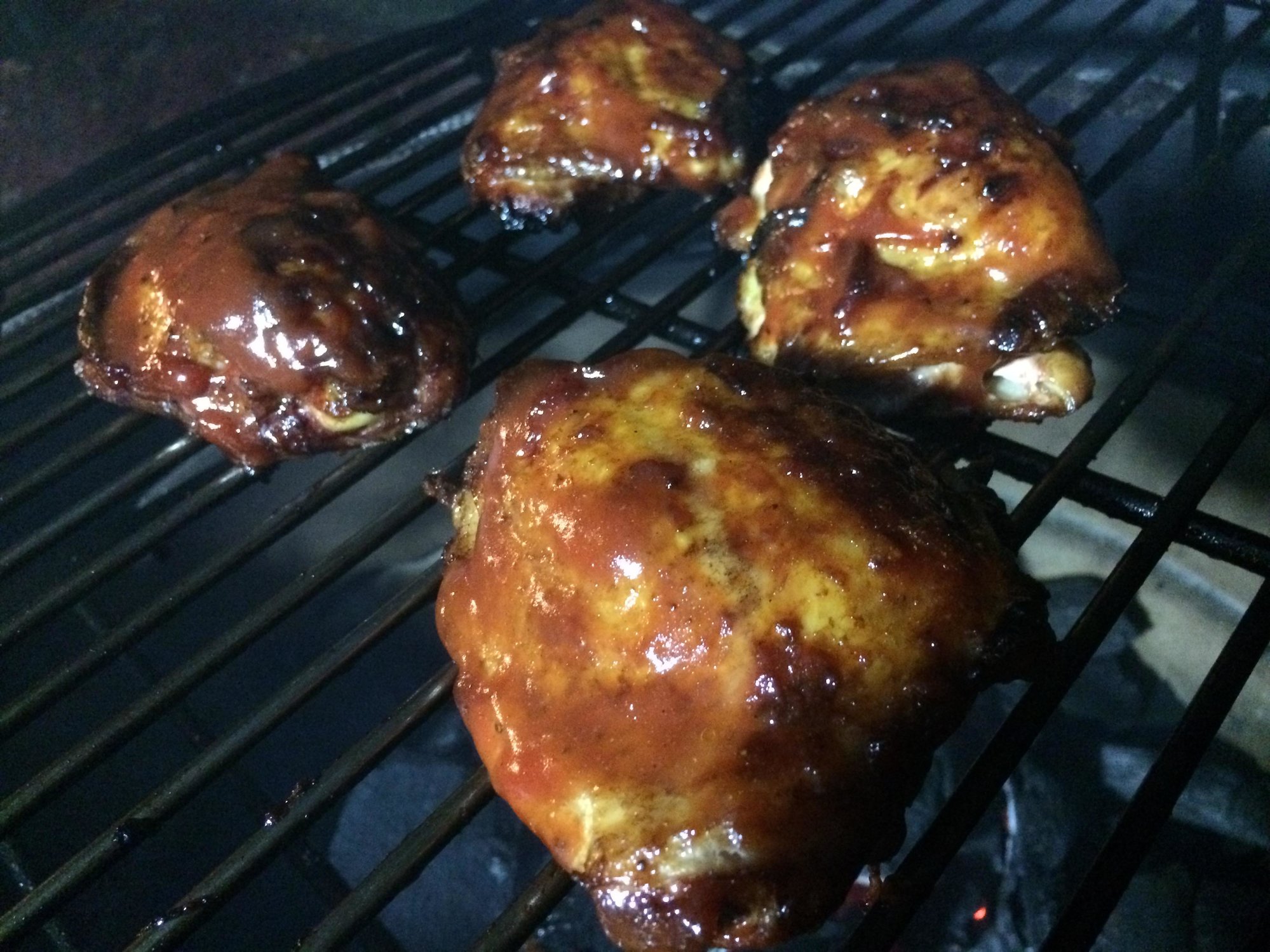 Thighs direct raised, 375. Apple smoke, homemade BBQ. Cmon Comments