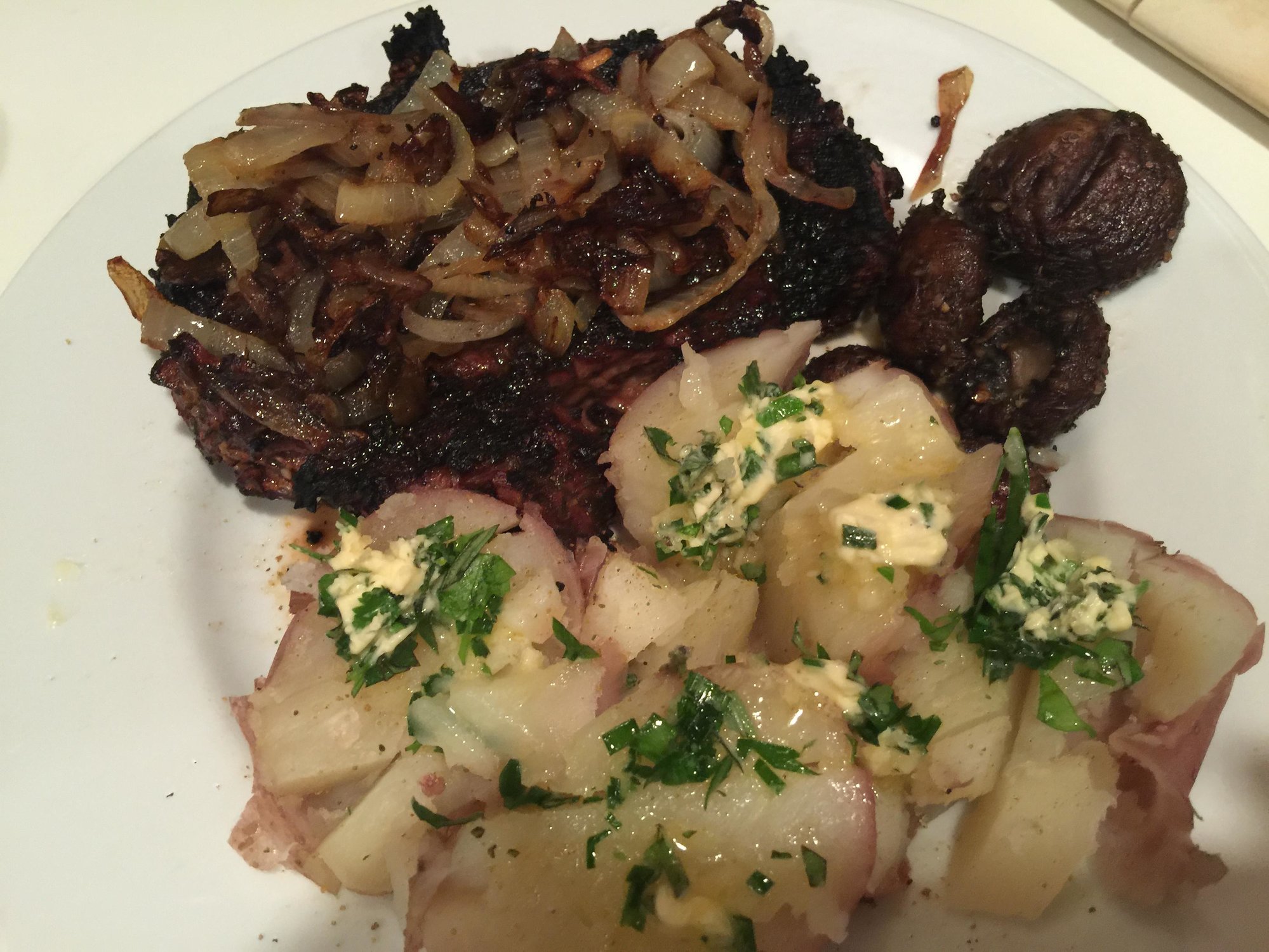 ...already posted Friday's cook of wings, didn't post Saturday's cook of pizza. Here's Sunday's cook of a ribeye and shrooms: