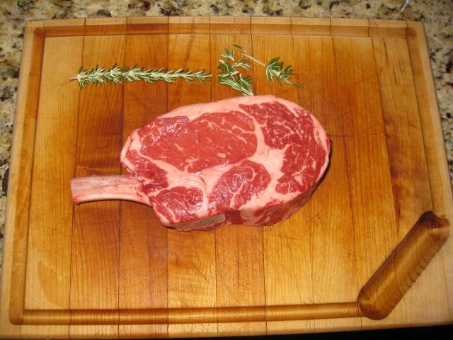 Recently moved to the Central Coast and I've heard a few Radio ads for a Butcher shop in a nearby city. I decided to drop by and see what they had. Nobody else in the store, so I got a chance to chat with the Owner for awhile. He had some HUGE Tomahawk Ribeyes that looked pretty tasty. He said that they had decided to cal them "Delmonico" Steaks. I chose one that came in at 1.66 lbs and is about 2 inches thick at the thickest point.