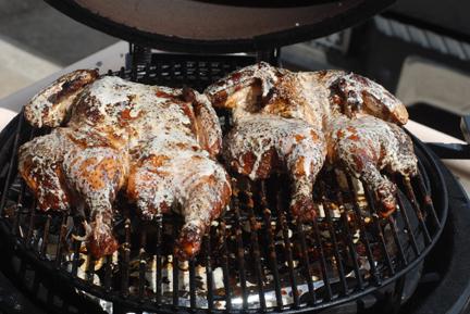 so........slow smoked these today at the store. 250ish cooker temp. about 3 hours. used small birds, about 3.5 lbs each, on purpose because slow smoking. basted them several times during the back half of the cook. sweet maple smoke, used a sweet rub that matches well with the white sauce. found the white sauce recipe online. t
