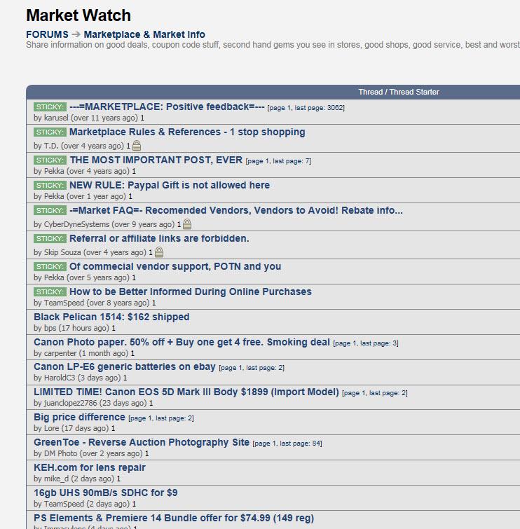 The camera forum i used to frequent had this section I used to check daily. Just throwing it out there. If Dizzy Pig rubs are on sale we could post it here for the forum members to see. How would it get policed i'm not sure.