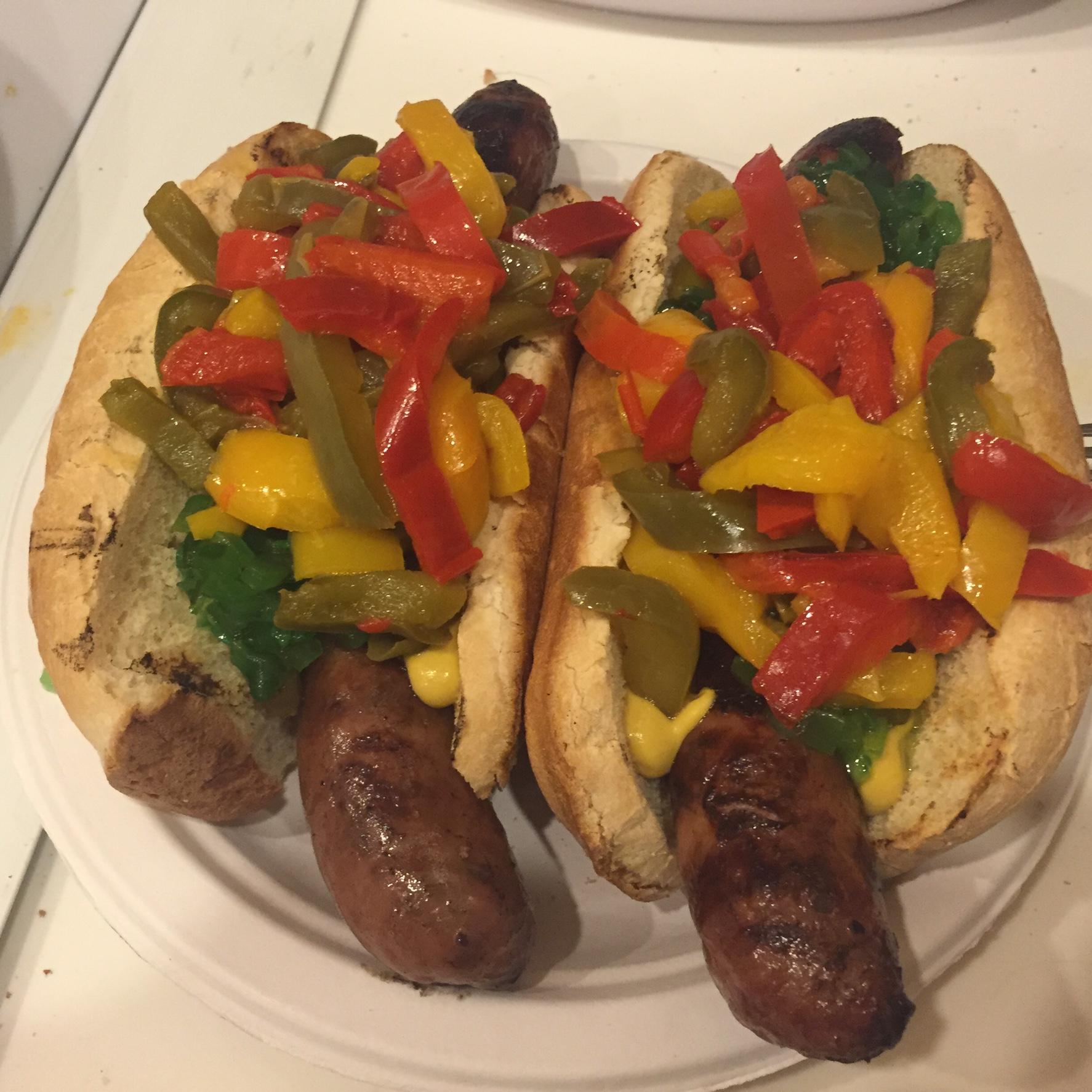 We just finished eating brats from the egg................but I did not stop long enough for pix.............. -