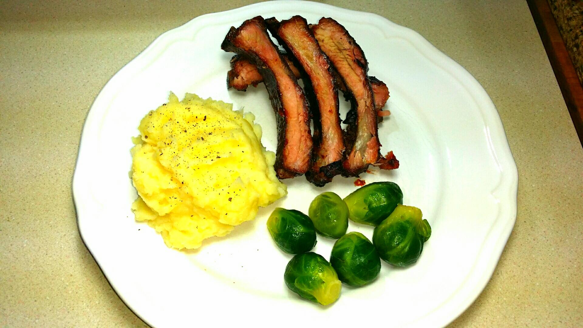 I plated with some mashed potatoes and brussel sprouts.