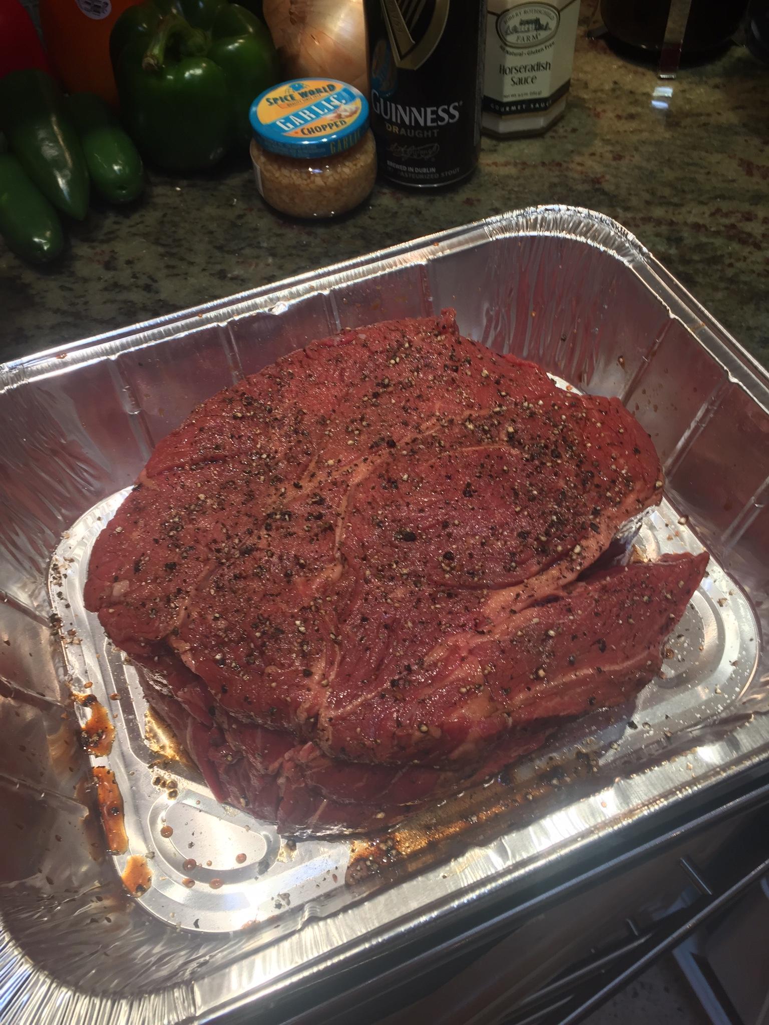 That looks great. Pepper Stout Beef rocks!Living the good life smoking and joking