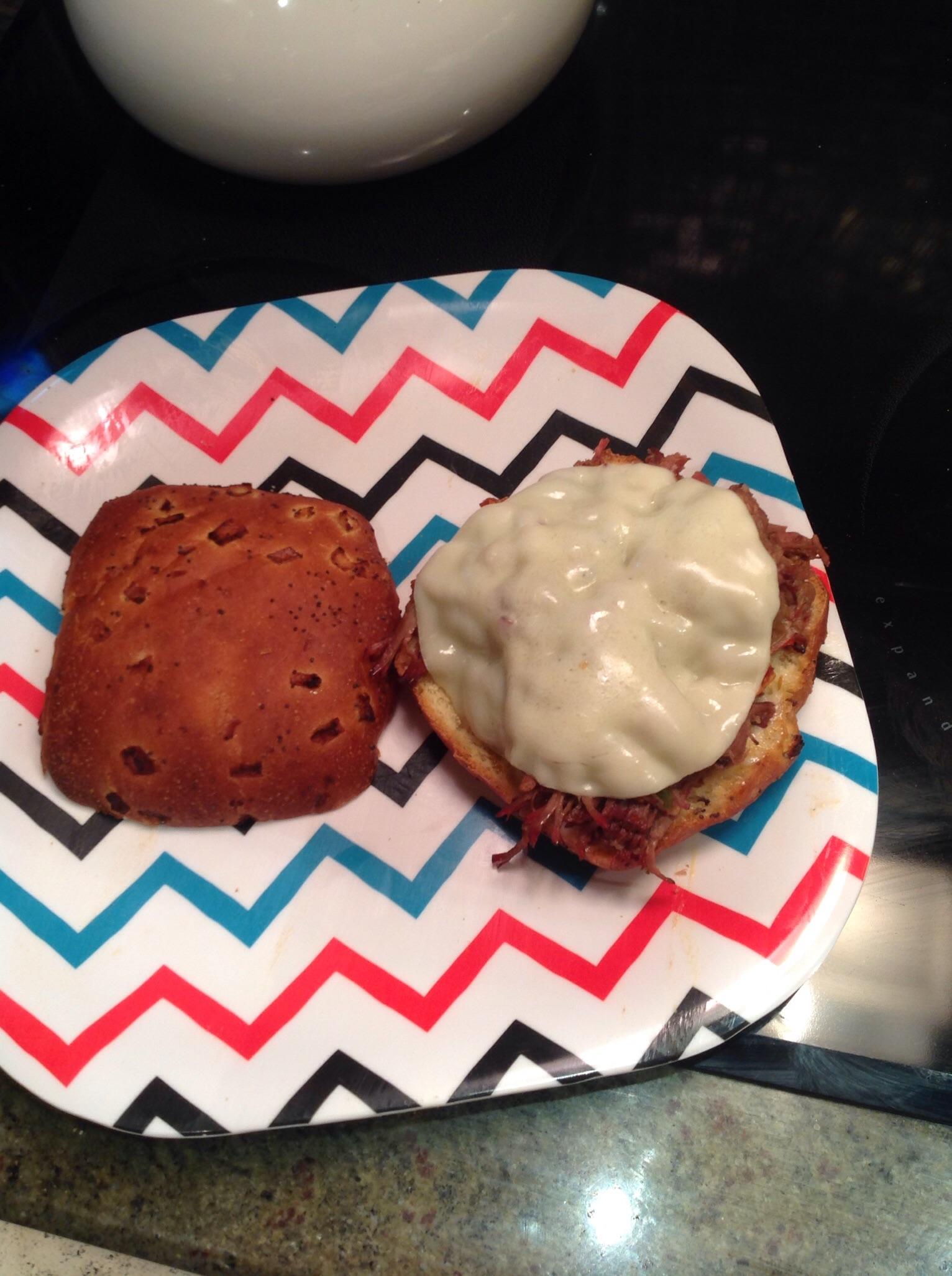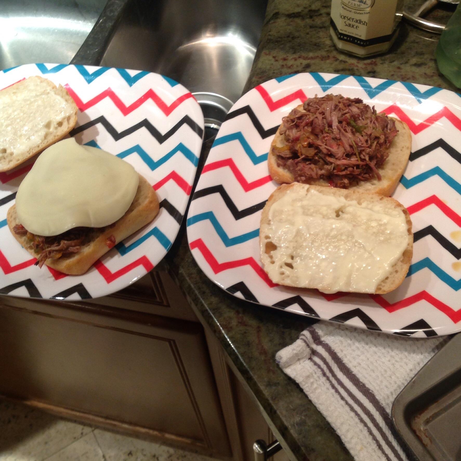 I have been wanting to try PSB for a while now and today was the day. I followed the Wolfe Pit recipe almost exactly. 250 indirect with some hickory chunks until 165 IT and then 350-450 wrapped up until spaghetti tender. It took about two hours longer than I planned but sandwiches were delicious. I added horseradish sauce and provolone to ciabatta and onion rolls. Sorry about the order of pics.