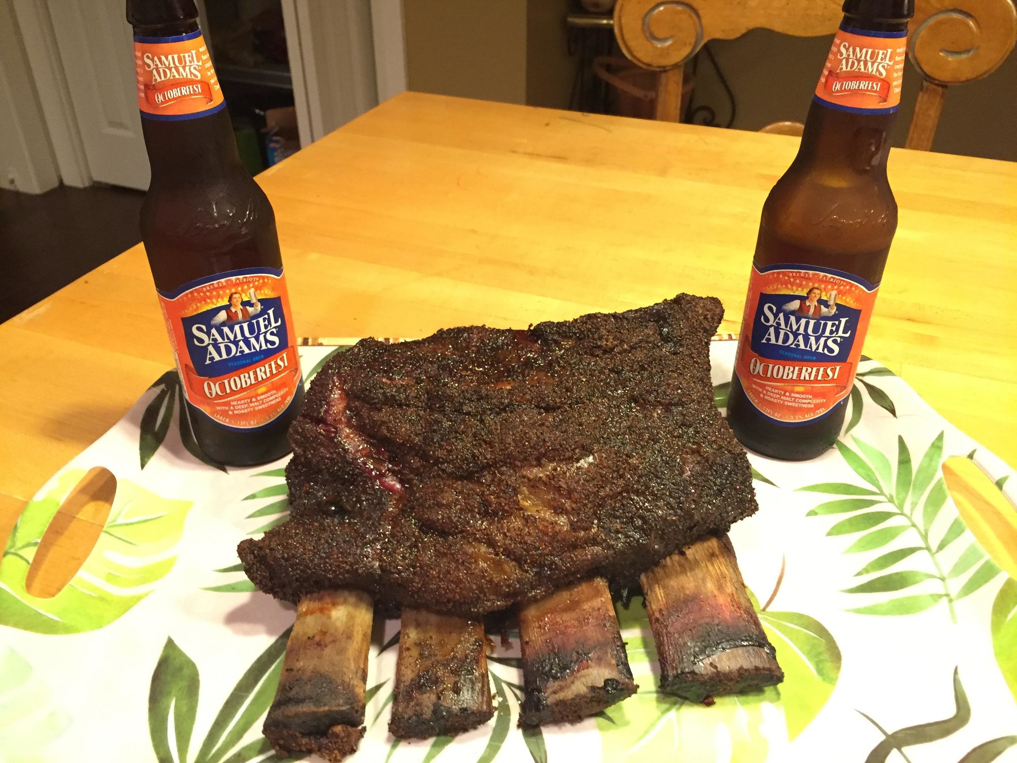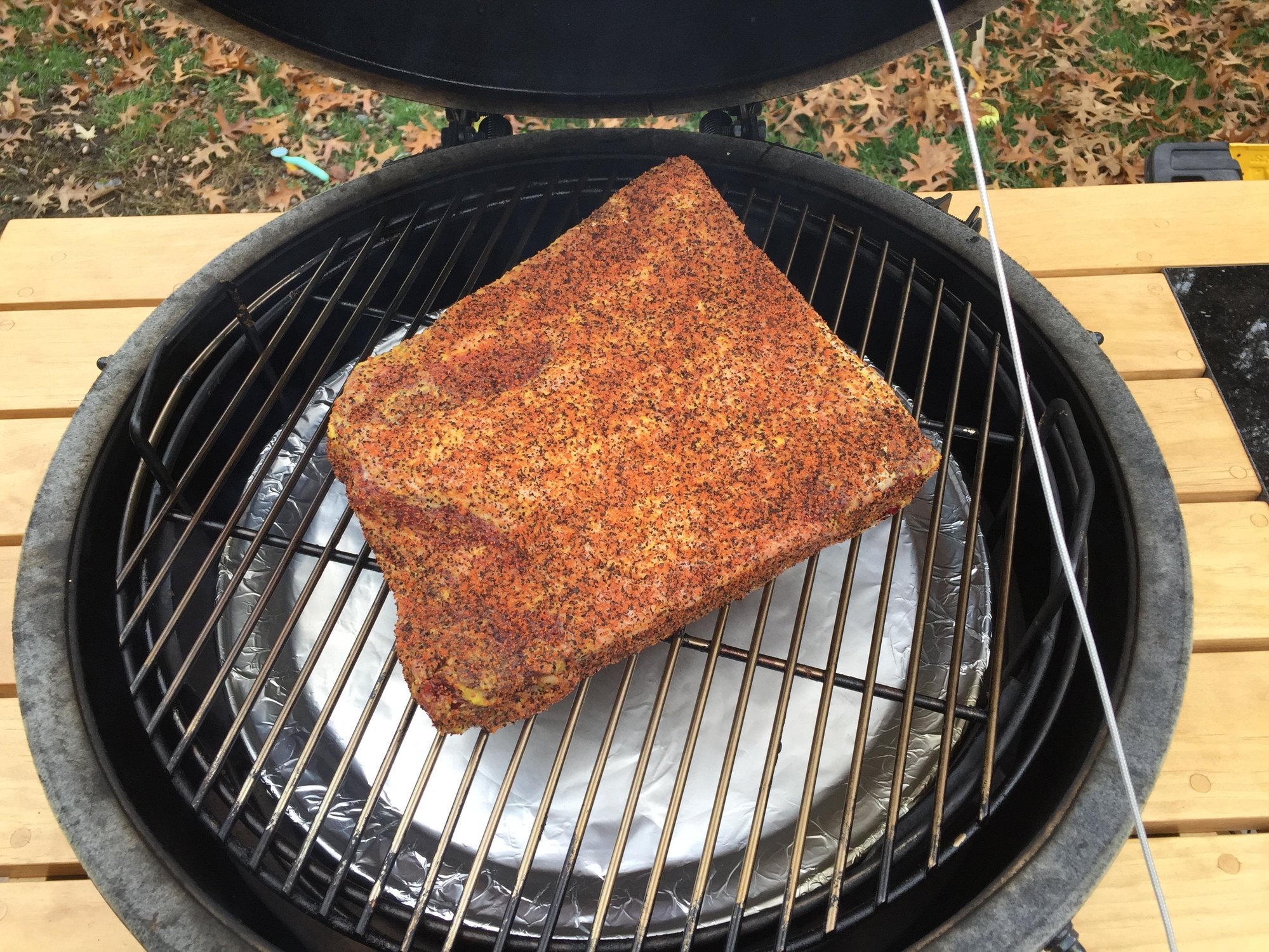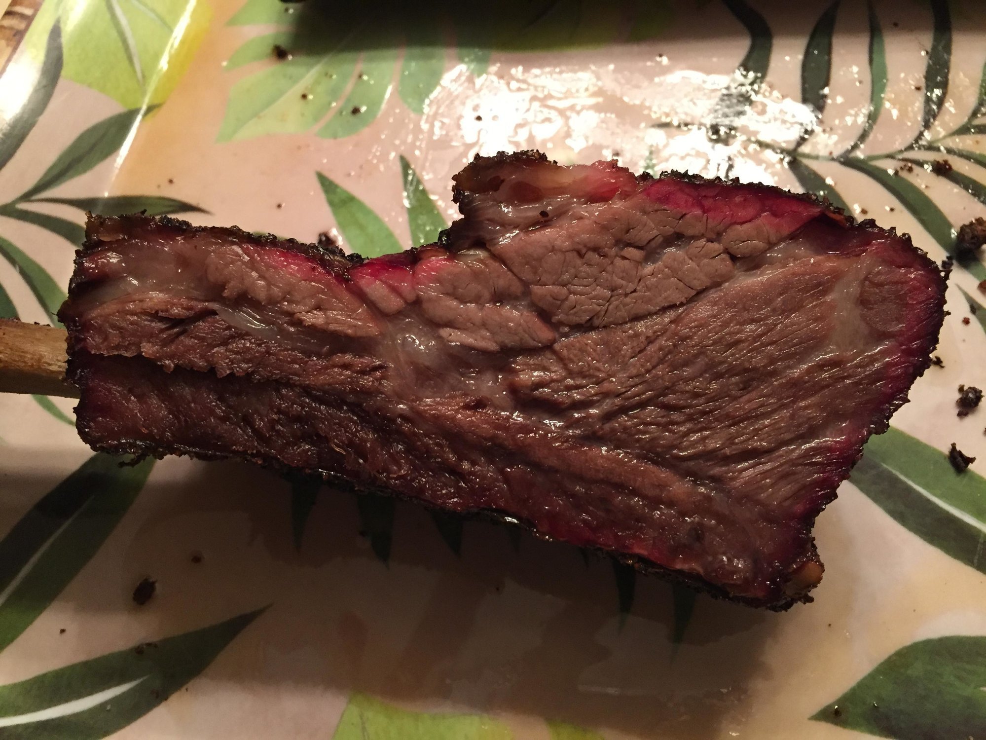 Alright. Short ribs went on at about 0900. Prep was yellow mustard and holy cow rub. I'm about to open the lid for the first time. It's been 4 hours. Rockwood and the Flame Boss have been doing all the work.