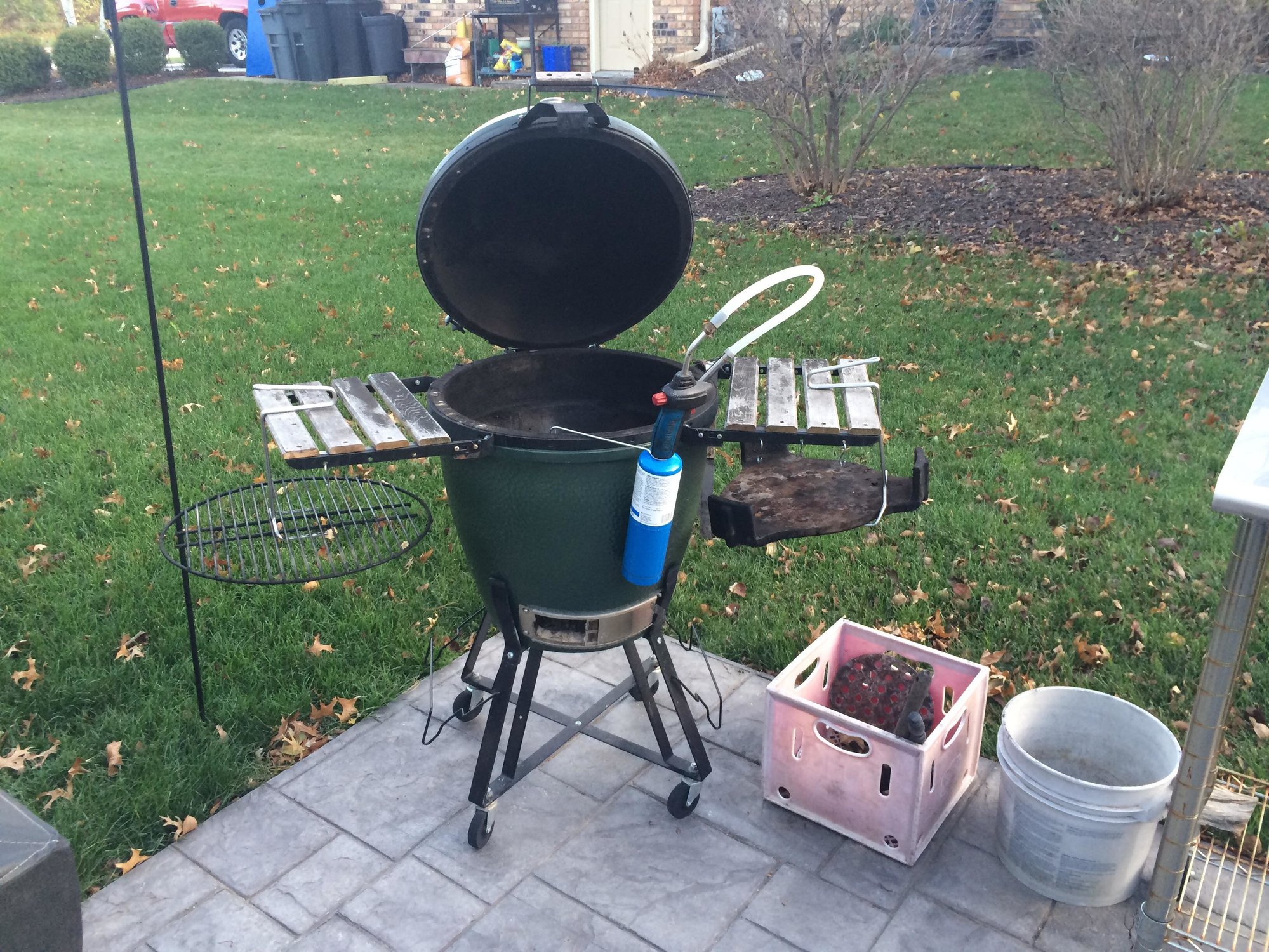 Where do you put your greasy grill grates when filling up the egg with charcoal?  I use old cardboard boxes to lay the grate on.  I'm sure there is a better way.