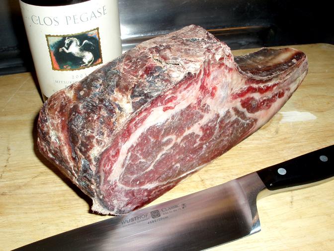 again 45 days (ask RRP if you doan believe me) is where it really pays off. nice weight loss (flavorless water is GONE). means the beef is more flavorful just from being condensed. but you also have 45 days worth of enzymes (call it decomposition if you really wanna, that's what it is). long flavorless proteins break down into flavorful amino acids. fat loses water and becomes buttery (what's butter but beef fat with water removed, sorta). good stuff