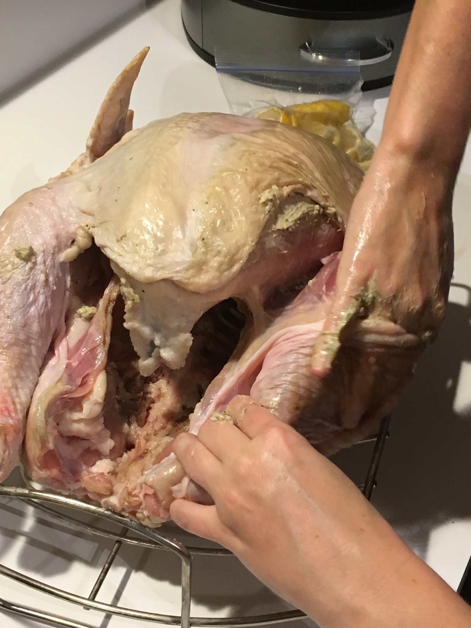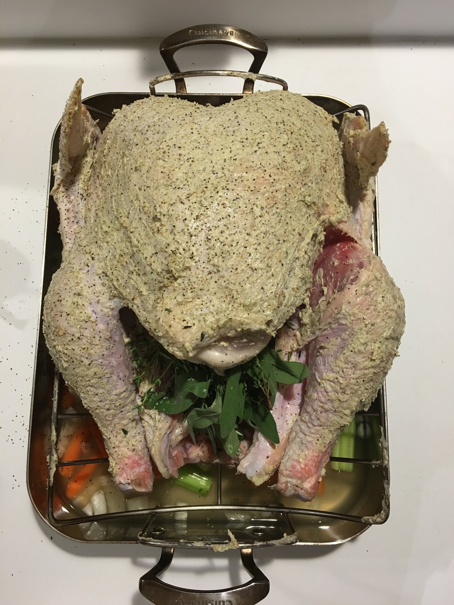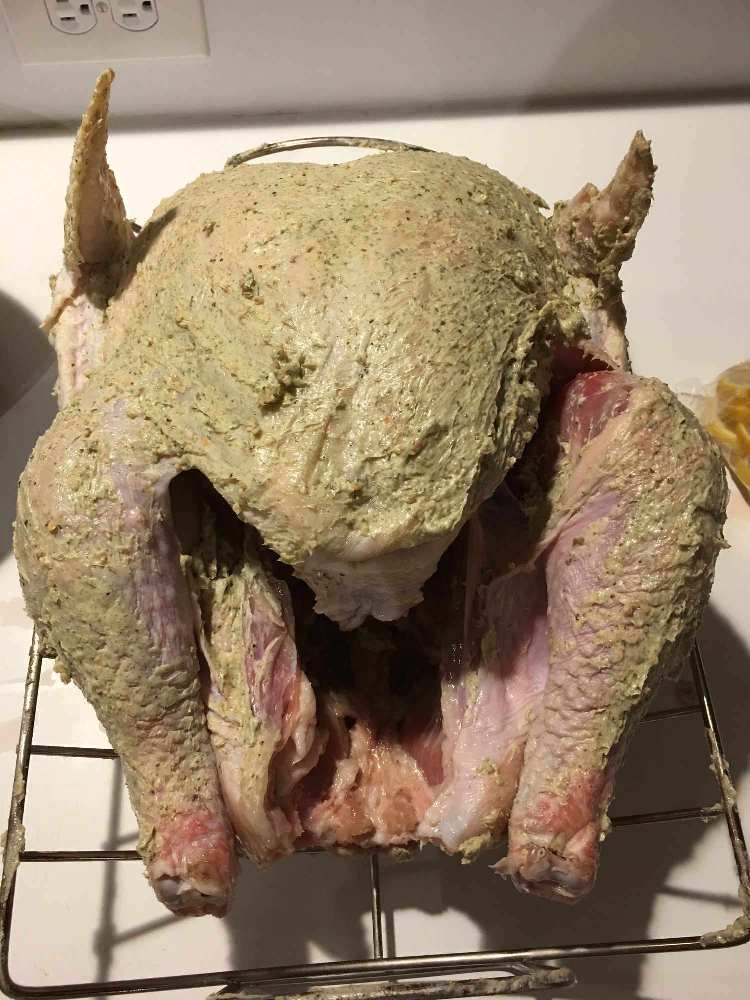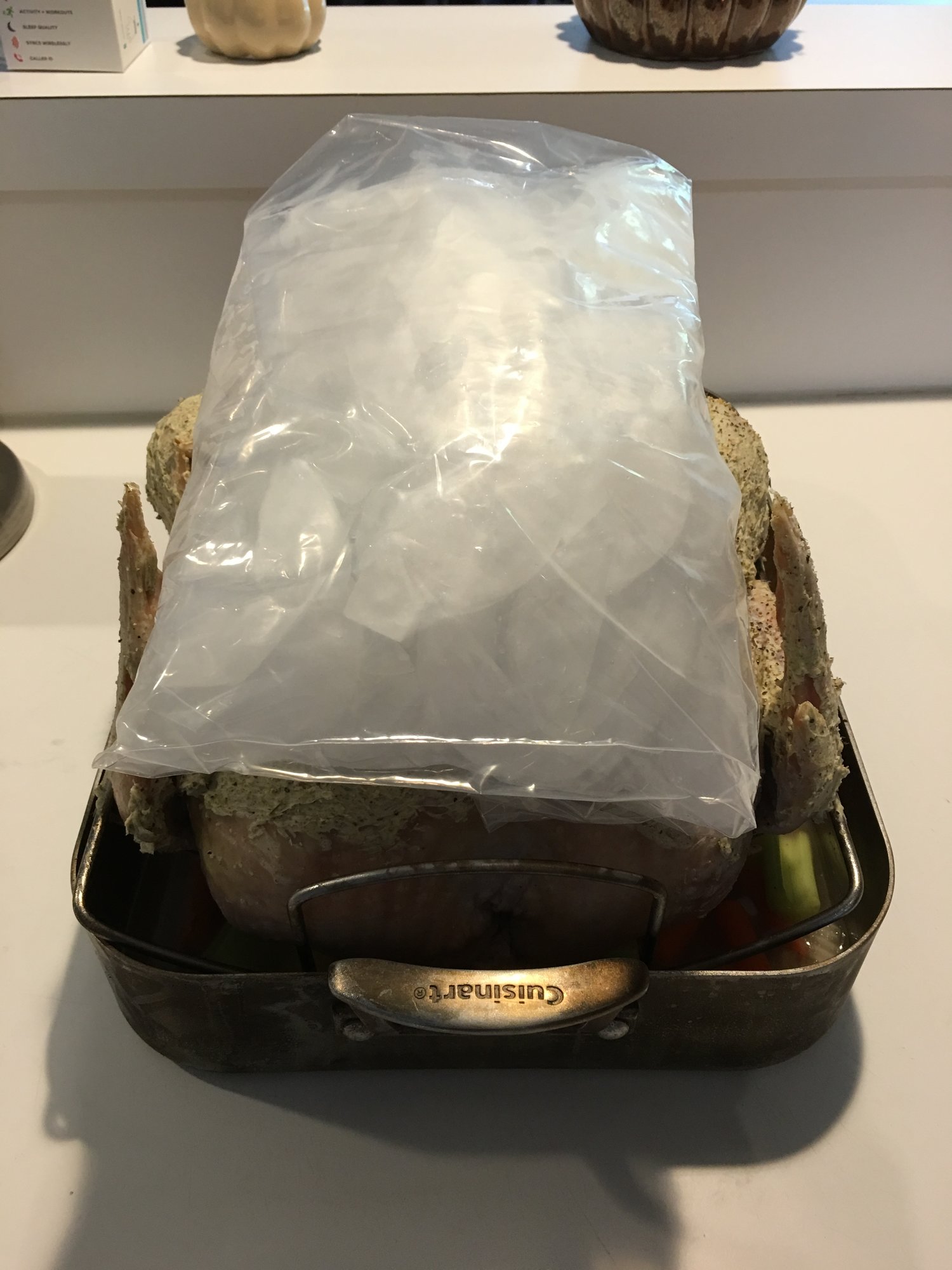Next will be 24 hours uncovered in the fridge, followed by an herb butter mixture.  Pics to follow for a few days!