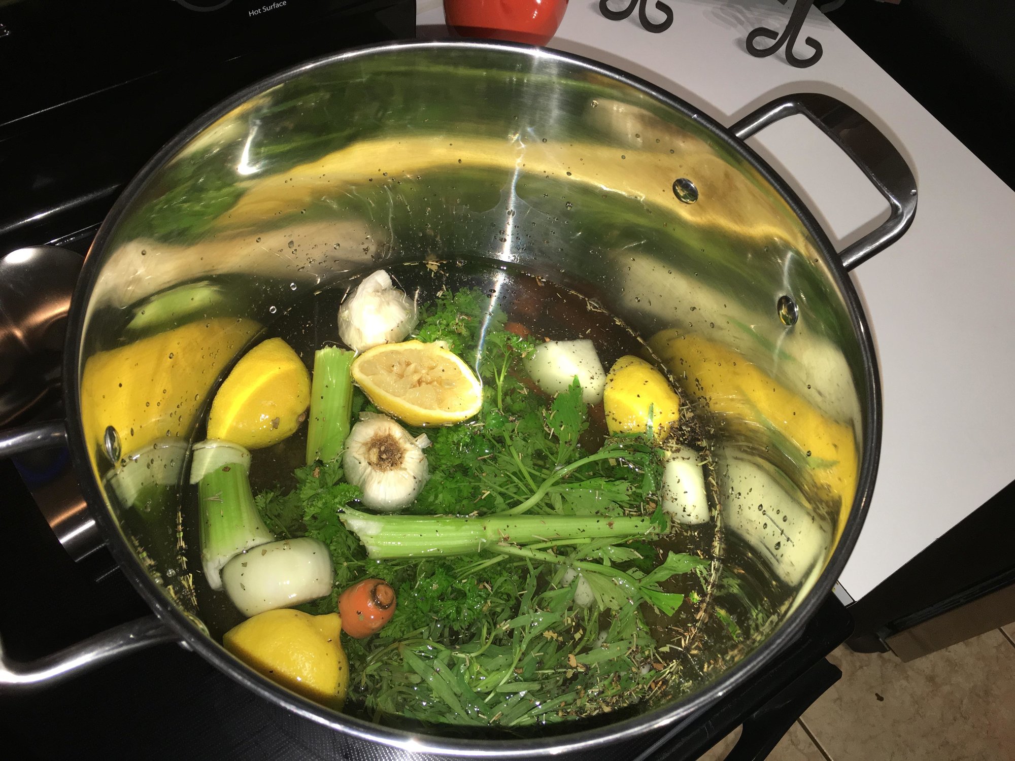 2 lemons- Halved (give a good squeeze as you toss then in)