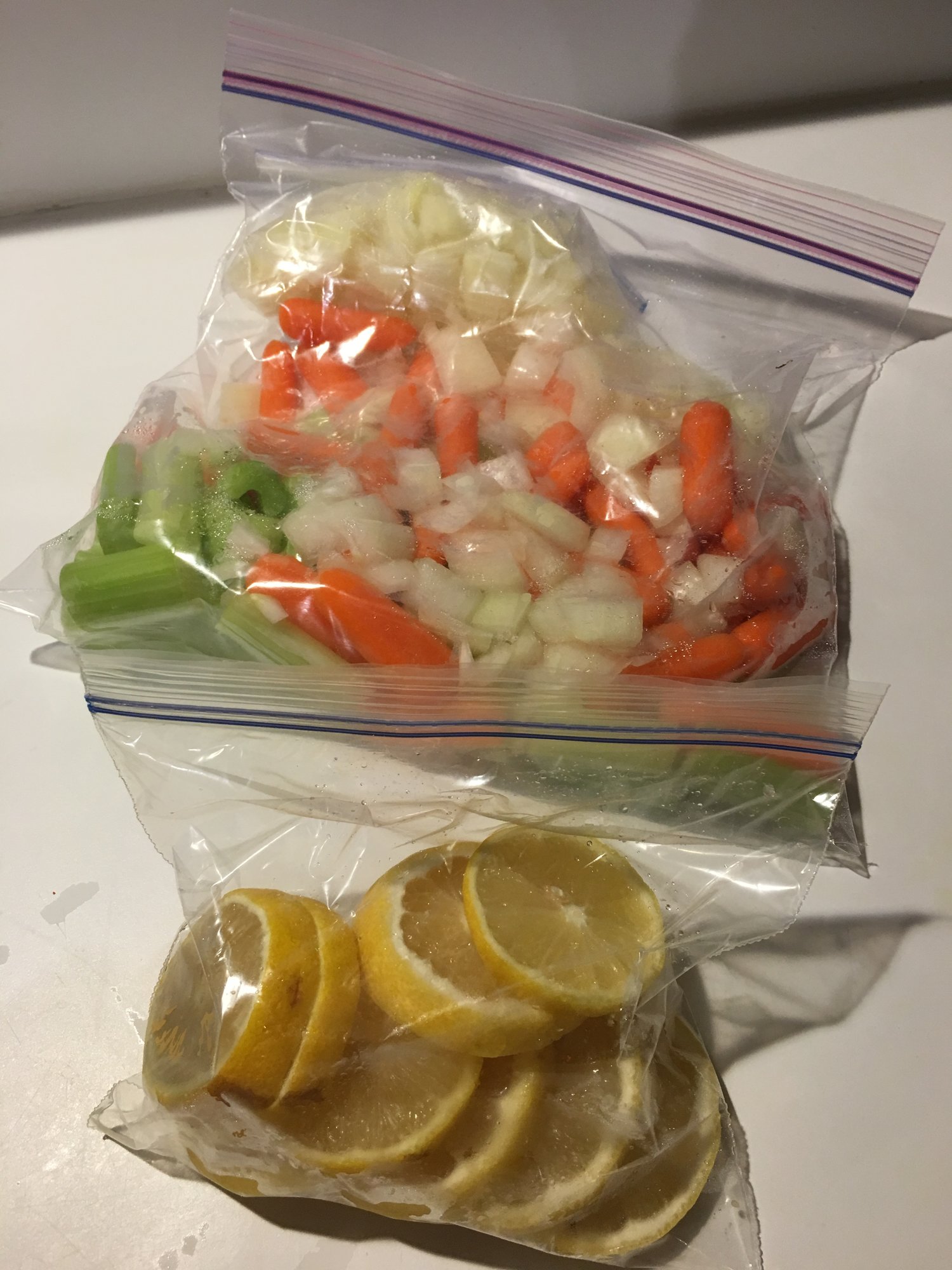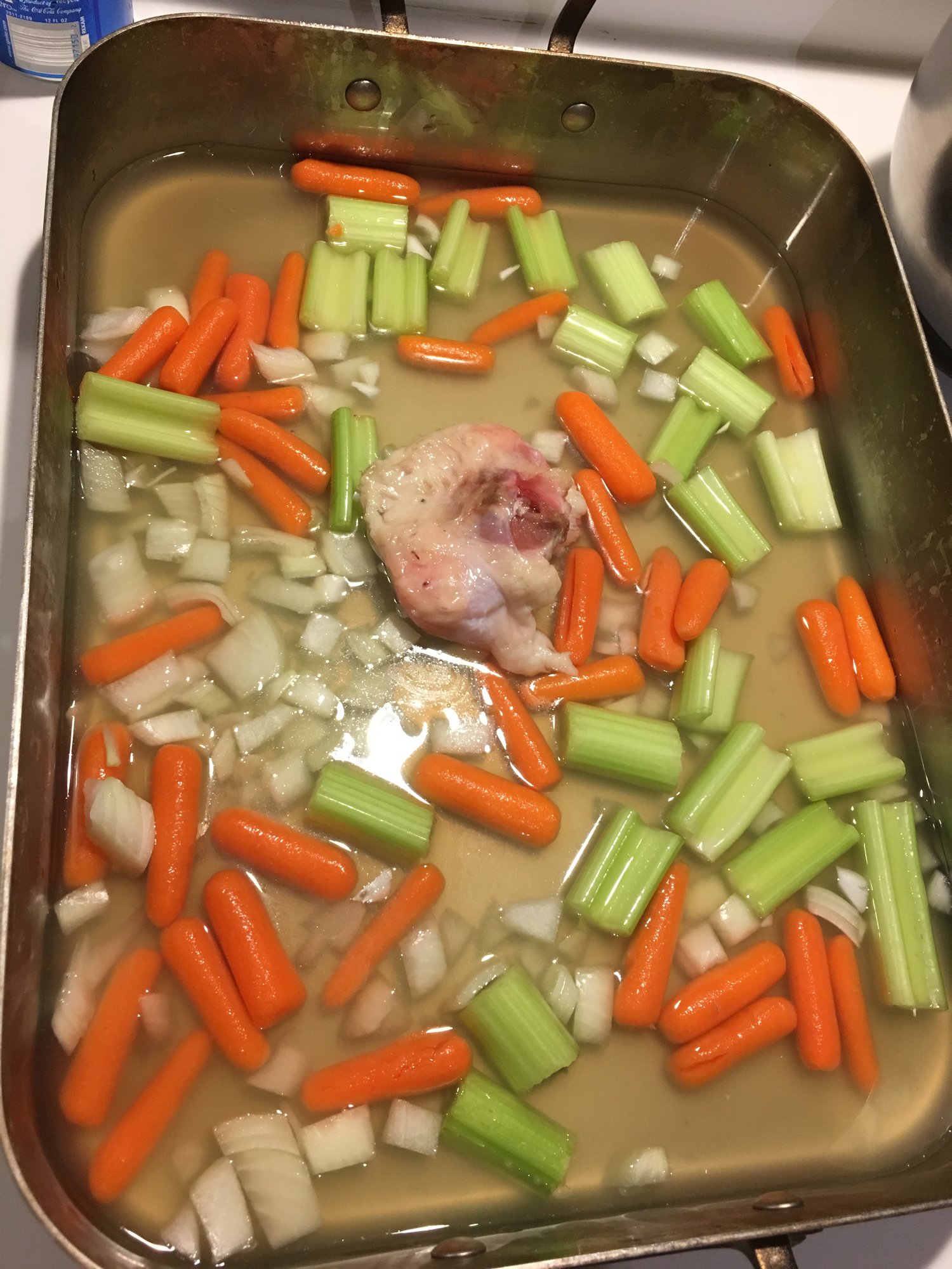 Should be noted that any aromatic can be thrown in - Celery, Carrot, garlic, any herbs (stems are fine) are all good and the more the merrier.