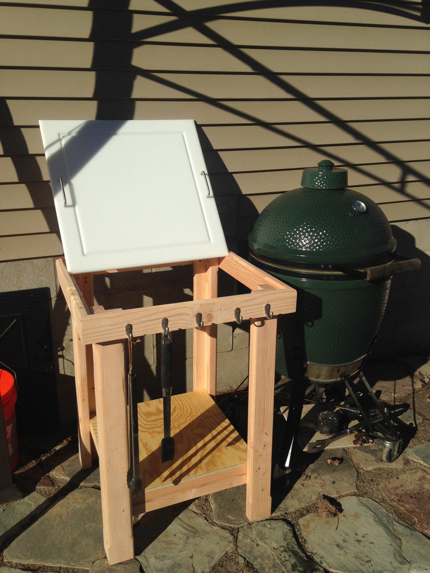 I use HDPE plastic. This is my side table with a removal cutting board top. Make transport to and from kitchen simple.