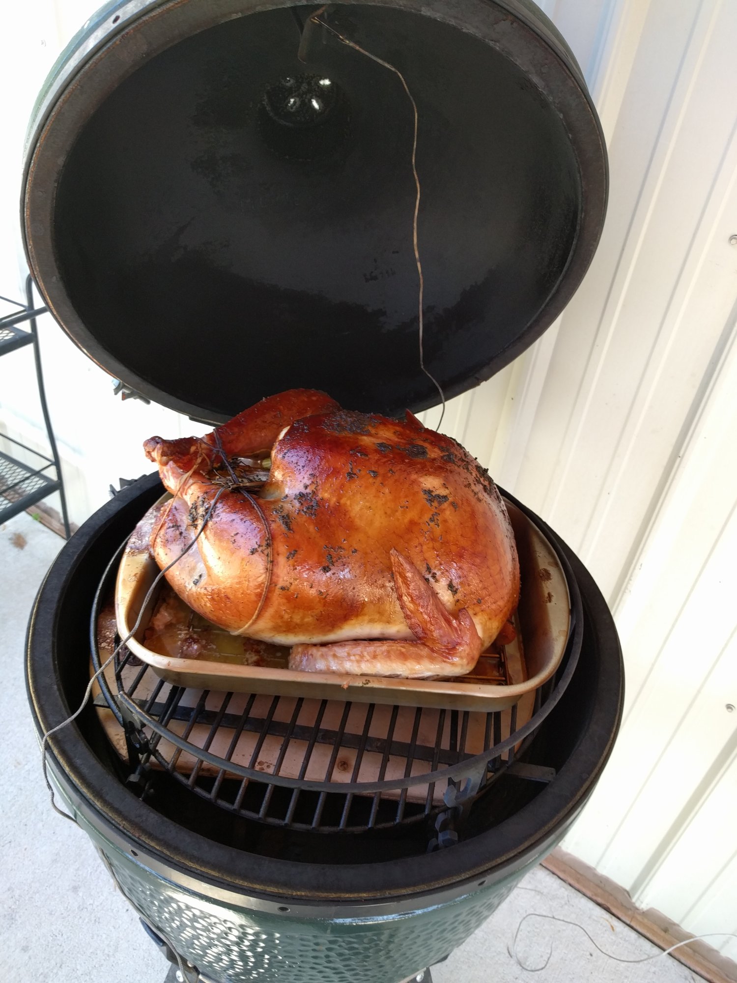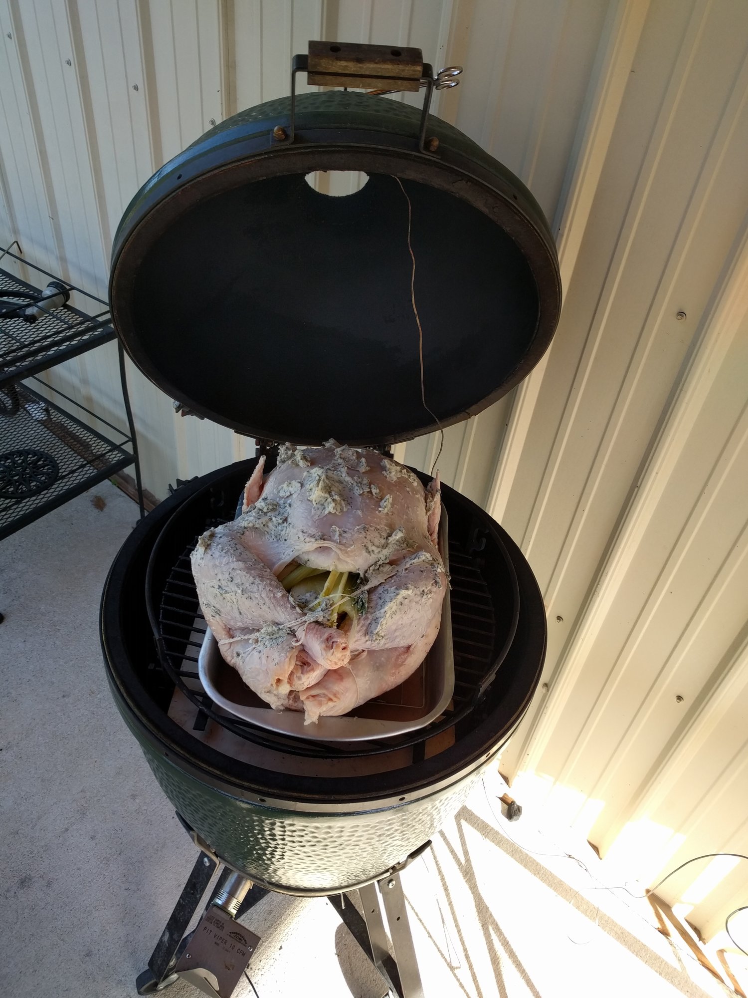 Temp is currently set at 250, but will be raising to 350 in 30min or so. The bird is about 22lbs.