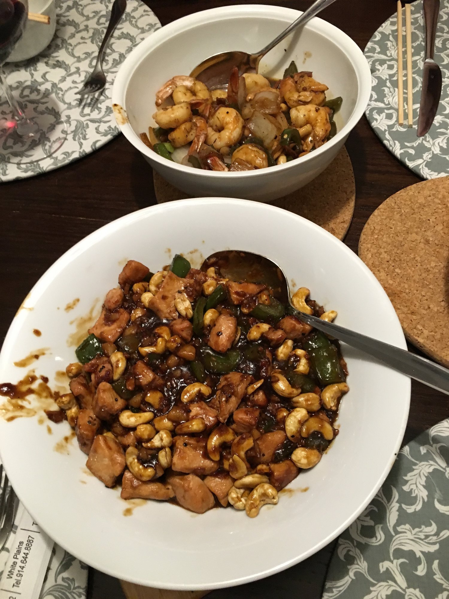 Thanks to all of the previous forum posts, we had a fantastic Chinese success. Daughter #1 was visiting with a few of her friends. Peking duck for appetizer followed by Mongolian beef, Cashew chicken and Kung Pao shrimp. I don't have a wok, but I used a cast iron skillet and it worked really well. Duck indirect on the Medium for 3.5 hours and the XL managed the rest.