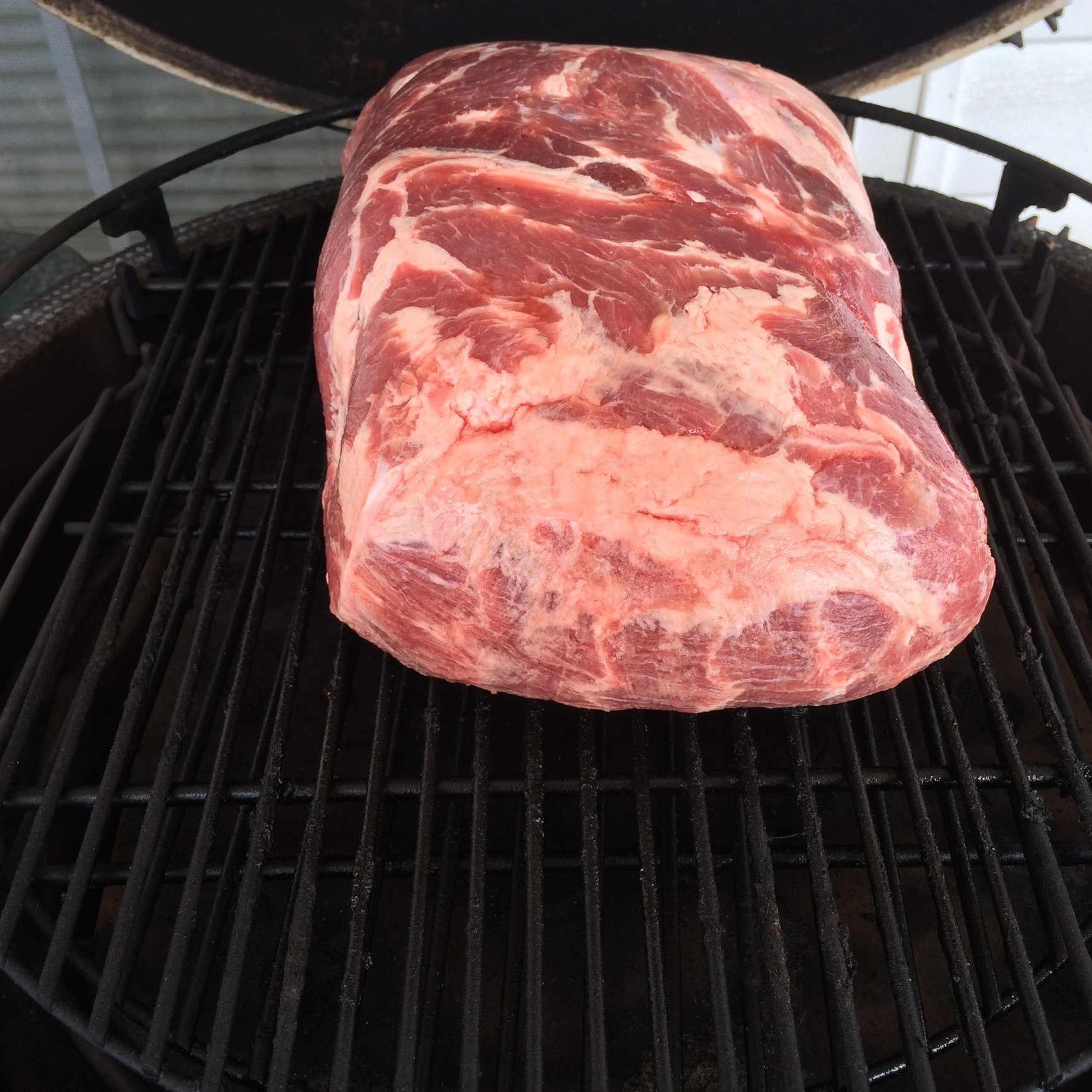 Just so you will know, if the need ever arises you can cook Boston butts that are frozen solid. You will see no difference in a froze and a thawed one except for a slightly extended cook time. Here is one that me and Nola cooked that was rock solid. You can see the ice on the outside of it still. Once it has thawed out on the egg, season it and keep on cooking.