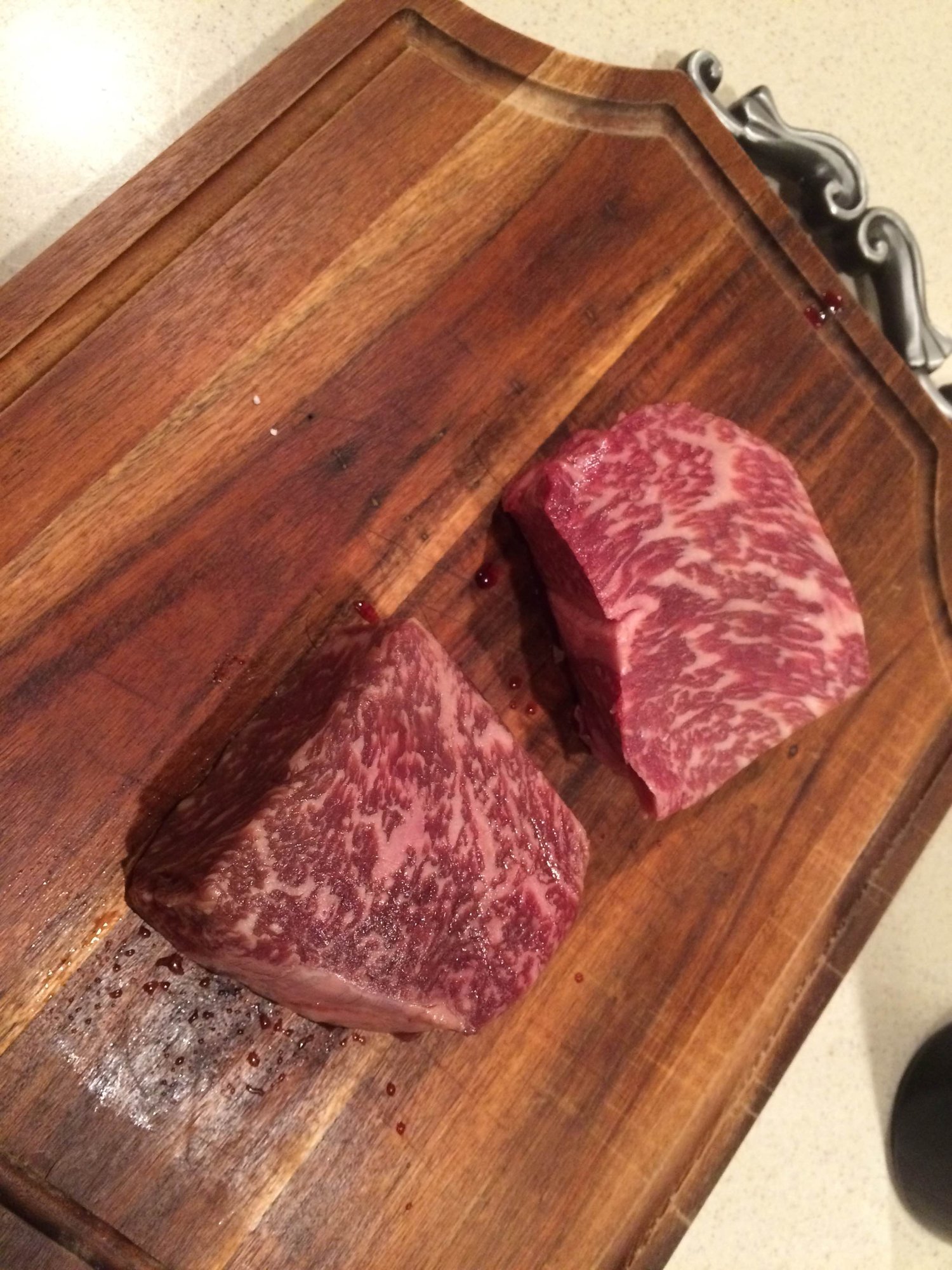Over Thanksgiving I decided to pull the trigger on my first Snake River Farms Kobe beef purchase.  I messaged with @SRFShane regarding the different cuts and packages, and man was he helpful.  I decided to go with the Cyber Monday package that included 2 Ribeye Filets, 1 Flat Iron, and 1 Ribeye Cap.  Last Friday, my wife and I decided to give ourselevs an early Christams present.  We fired up the Egg, opened a nice bottle of vino and gave the ribeye filets a shot to start our Christmas Holiday Break.
