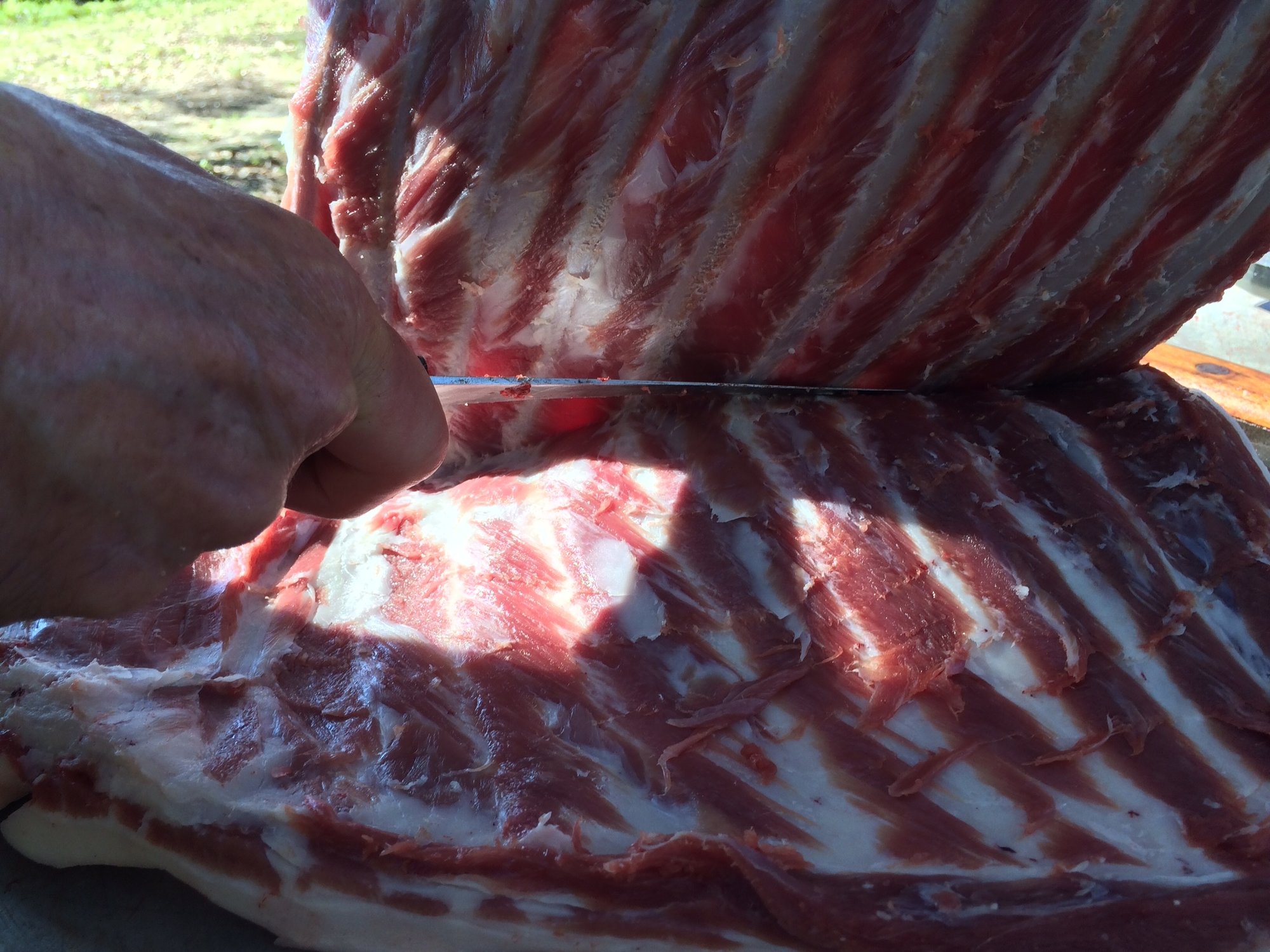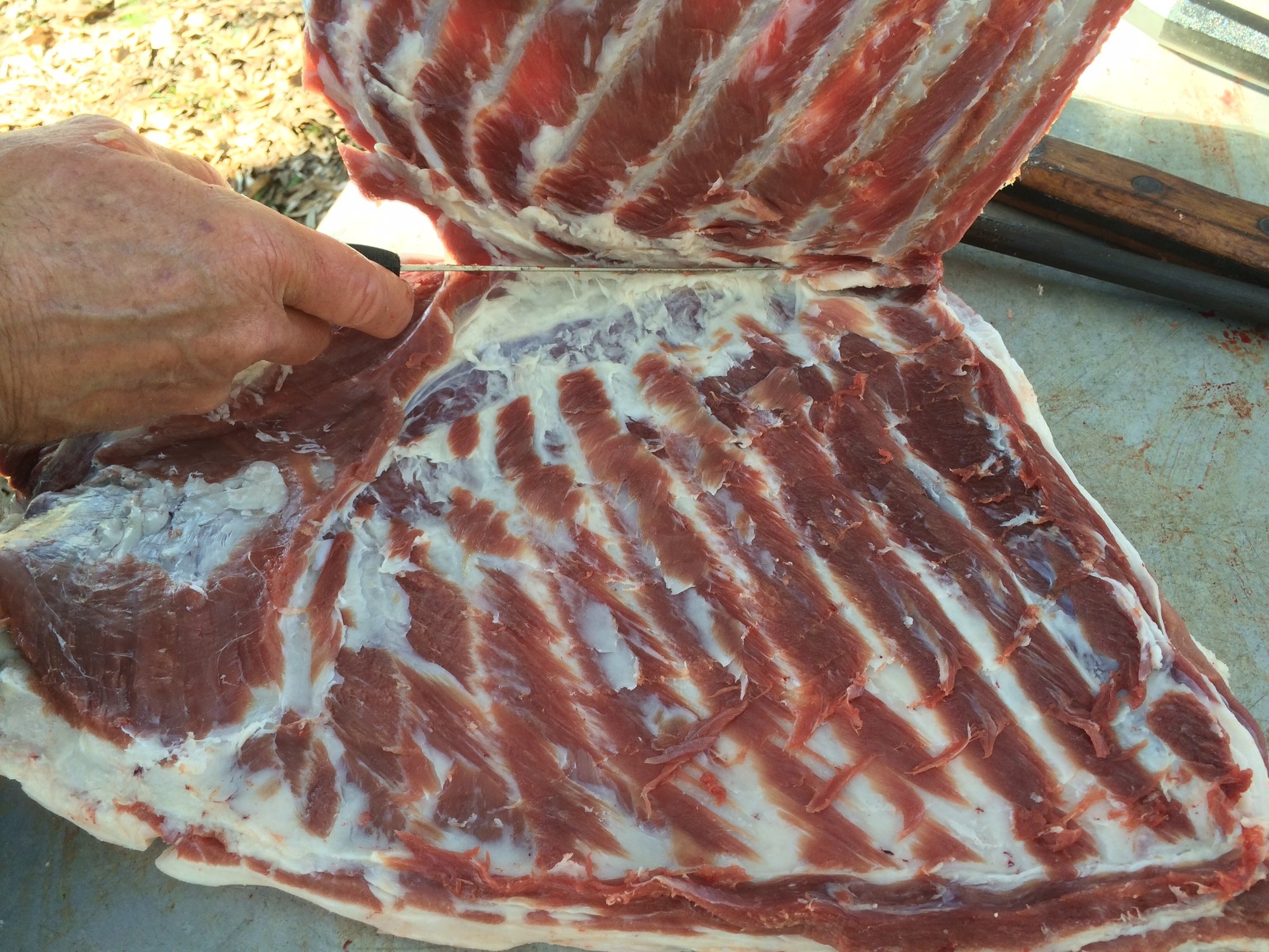 The second thing they do is use a nylon cord rib cleaner, to get all the rib meat off with the belly