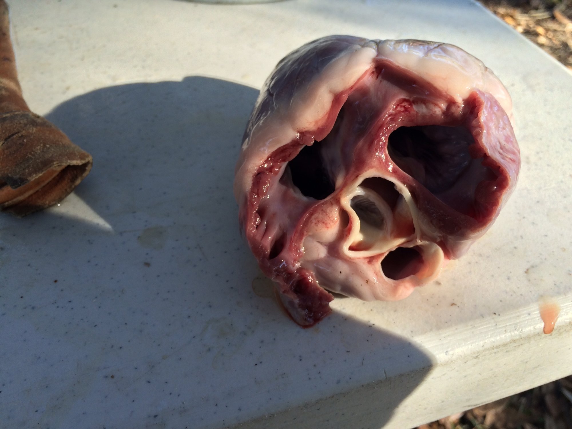 @Darby_Crenshaw - Above you asked how far that I break them down. Well it just depends my friend. If I'm breaking them for someone other than myself, I will take it all the way down to primals, subprimals and commodity cuts if that is what they want. Some folks request just primal breaks, some a combination of the 3. So it just depends. Now that I'm getting older I prefer to stop at the subprimal stage. Anything beyond this is really hard on me now that I have semi-paralyzed hands. I still do it all with a knife and manual hand saw. So it can get real labor intensive due to my hands. However on a good day I will still reduce them to commodity cuts if requested. For myself, I take them down to primals and call it good enough unless my wife wants pork chops and them I will break the vertebrae on down. You also asked how much do I save. Again it just depends on what I'm making, how much time I have to dedicate and so forth. These 4 hogs that I just slaughtered, I did keep the livers and hearts but no other innards. With this much meat on hand I just didn't have time to process the innards. I also did cut the head out and leave the jowls still intact to the carcass. This is a old trick that you don't see much now days. If I would have killed only one hog I would have kept everything and processed it.  So again, it just depends on the volume and what someone wants. When I was younger, I was pretty good at breaking. Now I just get by my friend. Here is me separating the belly from the ribs and the jowls still attached to the carcass with the head cut out and the livers and hearts that I kept.