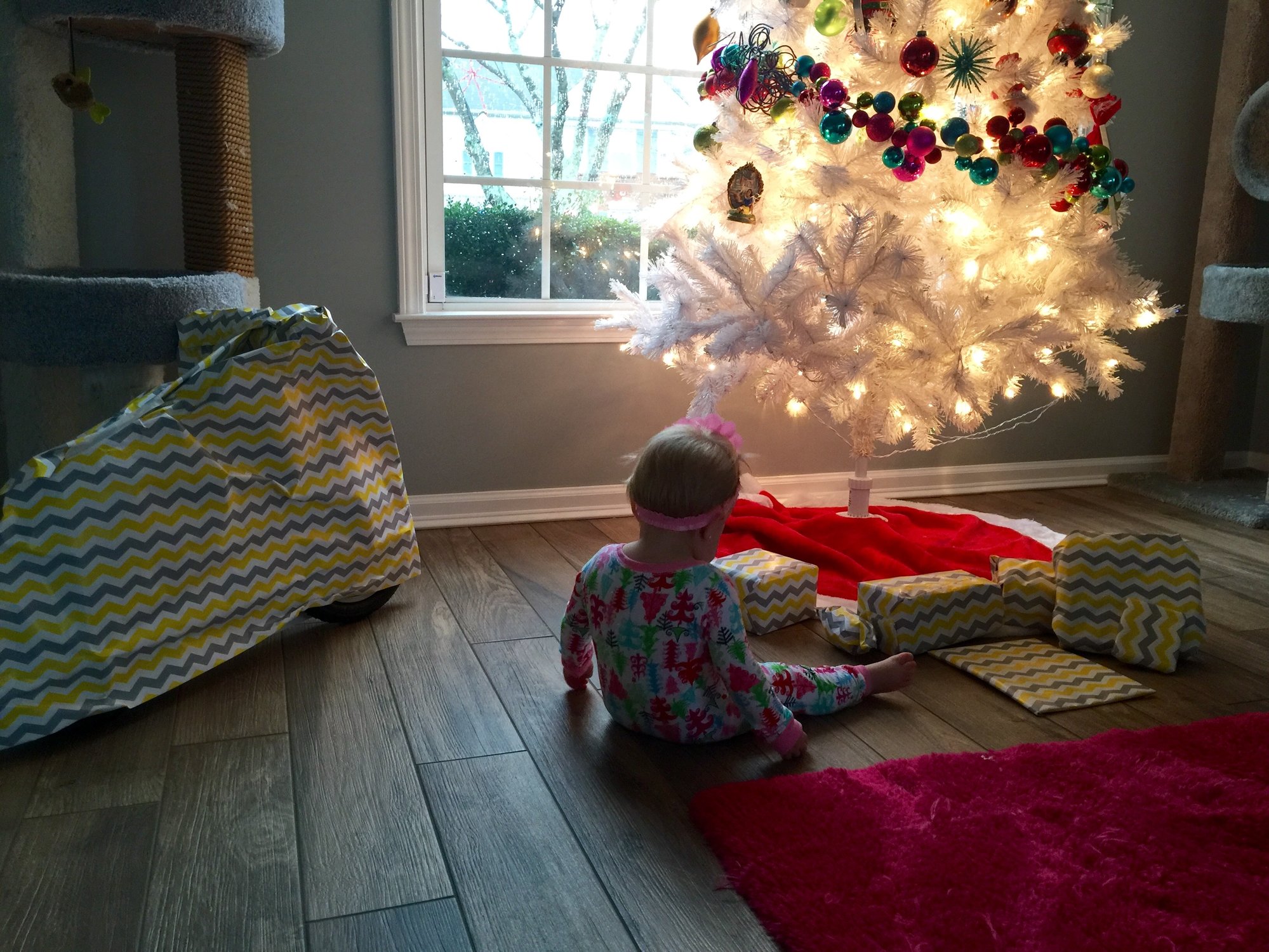This year was special as we got to host my families Christmas Day gift exchange. I had to smoke a ham for my wife's family Christmas gathering that evening so my Mom asked if we wanted to host it to make it easier on us with the ham. (This is a big deal as it's been a tradition to open gifts at their house as long as I can remember) My wife and I had to go the extra mile with Christmas decorations. We put one box worth of ornaments on the tree and called it good. Once we found out my family was coming over for Christmas the second box of ornaments went on the tree! =)  Garland around the stairway railings, and more Christmas decorations around the house. It's not like my family would have cared but their house always looks so nice and decorated during Christmas. So I figure this is our one opportunity and we better make it right.