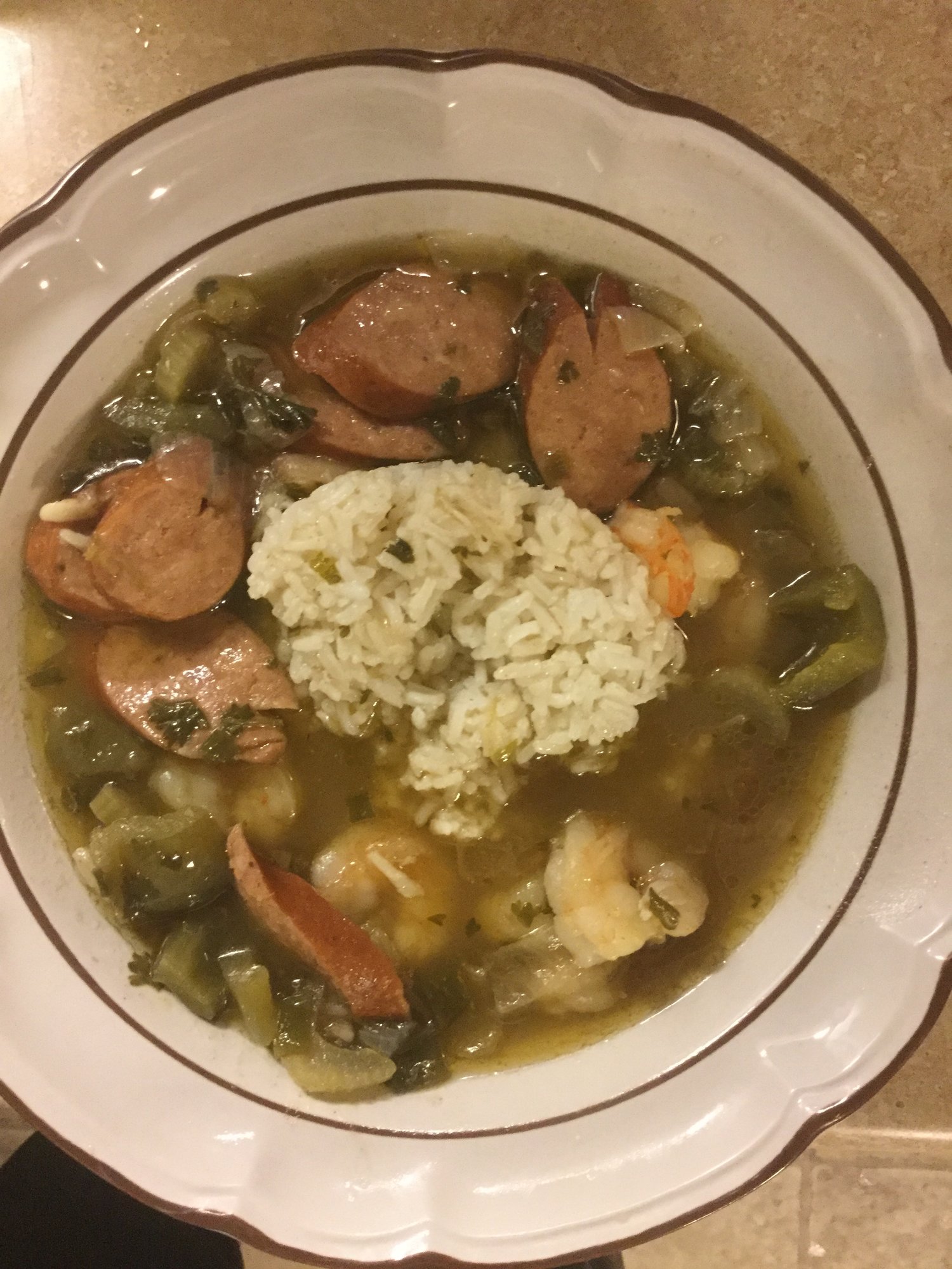 To anyone following my recipe above, in a haste to type, I left out File. File is a must for authenticity. My apologies.
